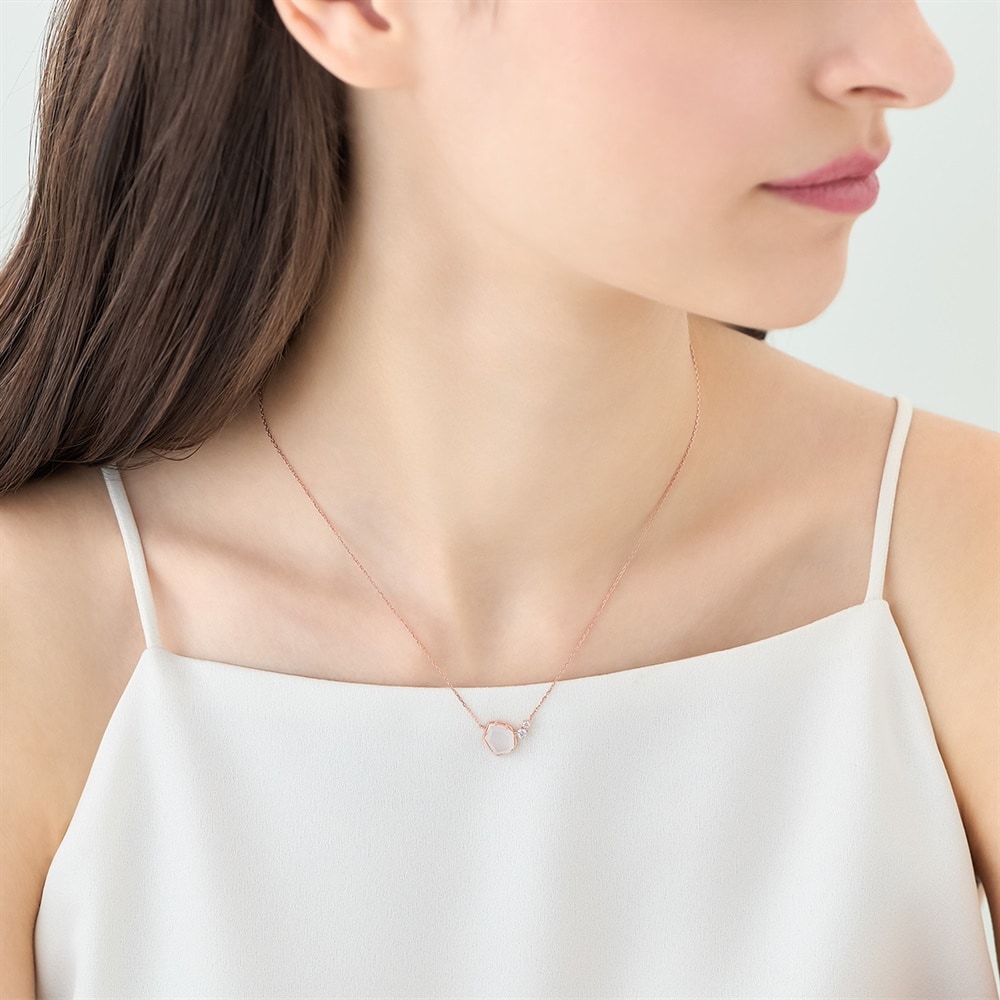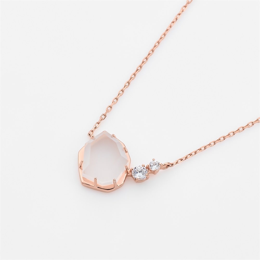 「初夏のやわらかな光と風」をイメージした、日常にさり気ない華やぎをもたらすアーリーサマーコレクション。自然のやわらかな光をイメージしたオリジナルカットのミルキークォーツがポイントのネックレス。肌なじみの良いストーンのため、自然とコーディネートに溶け込みます。おでかけなどで活躍するデザインのため、ご自身へのご褒美におすすめです。※天然石・天然素材を使用しているため、実際の色味や風合いが異なる場合がございます。 【数量限定ケース付き】 なくなり次第終了※ショッピングバッグ内の画像が限定ケースではない場合、限定ケースのお取り扱いは終了しております。