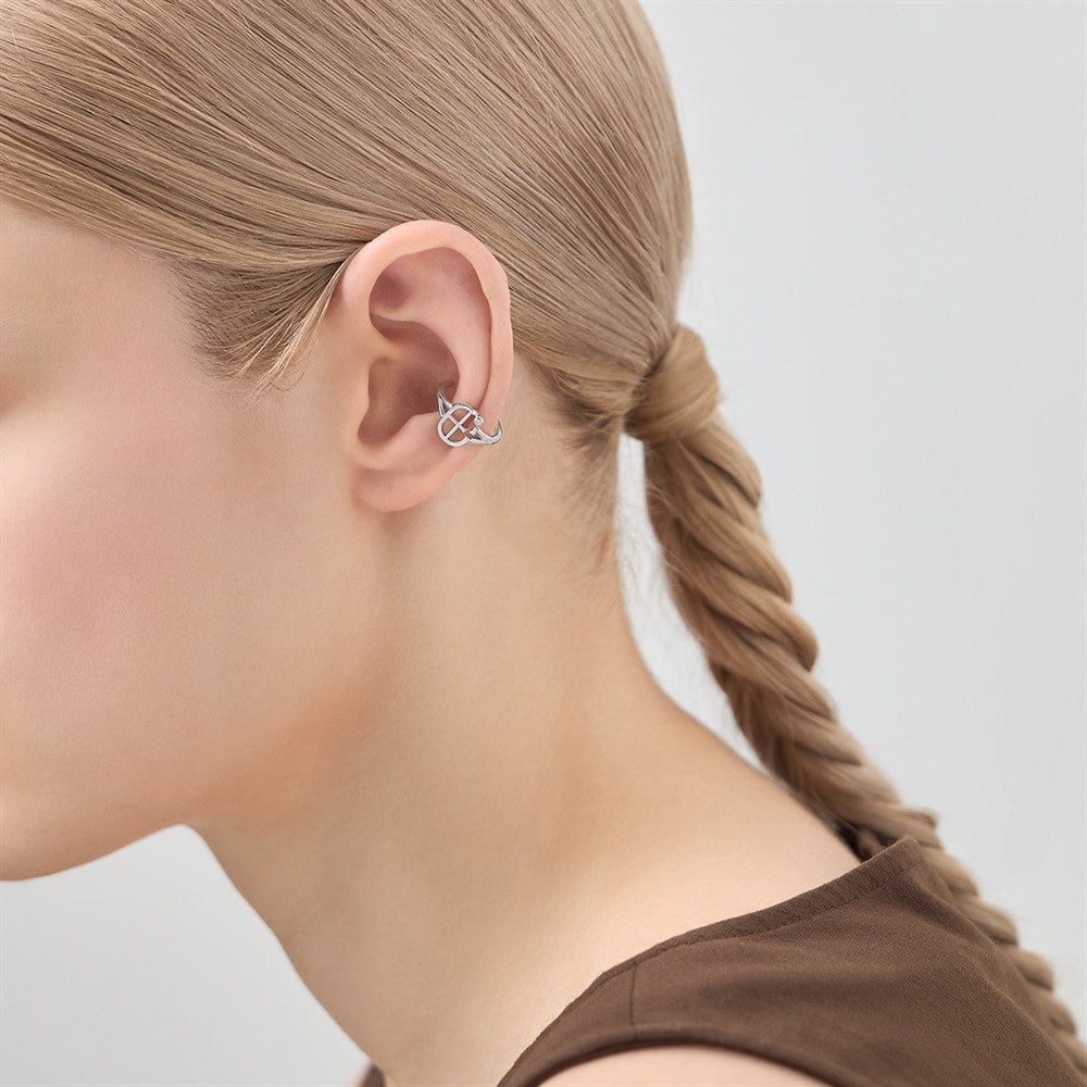 CANAL 4℃のシンボルマークを日常に寄り添うジュエリーとして表現したコレクション。リングとしてもイヤーカフとしても楽しめる2WAY仕様のリングカフ。シンボルマークをモチーフにしたミニマルなデザインに、キュービックジルコニアのきらめきを添えました。指や耳元にさり気なく寄り添い、洗練された印象を与えます。お持ちのジュエリーとの重ね着けもおすすめです。【同コレクションのアイテムはこちら】