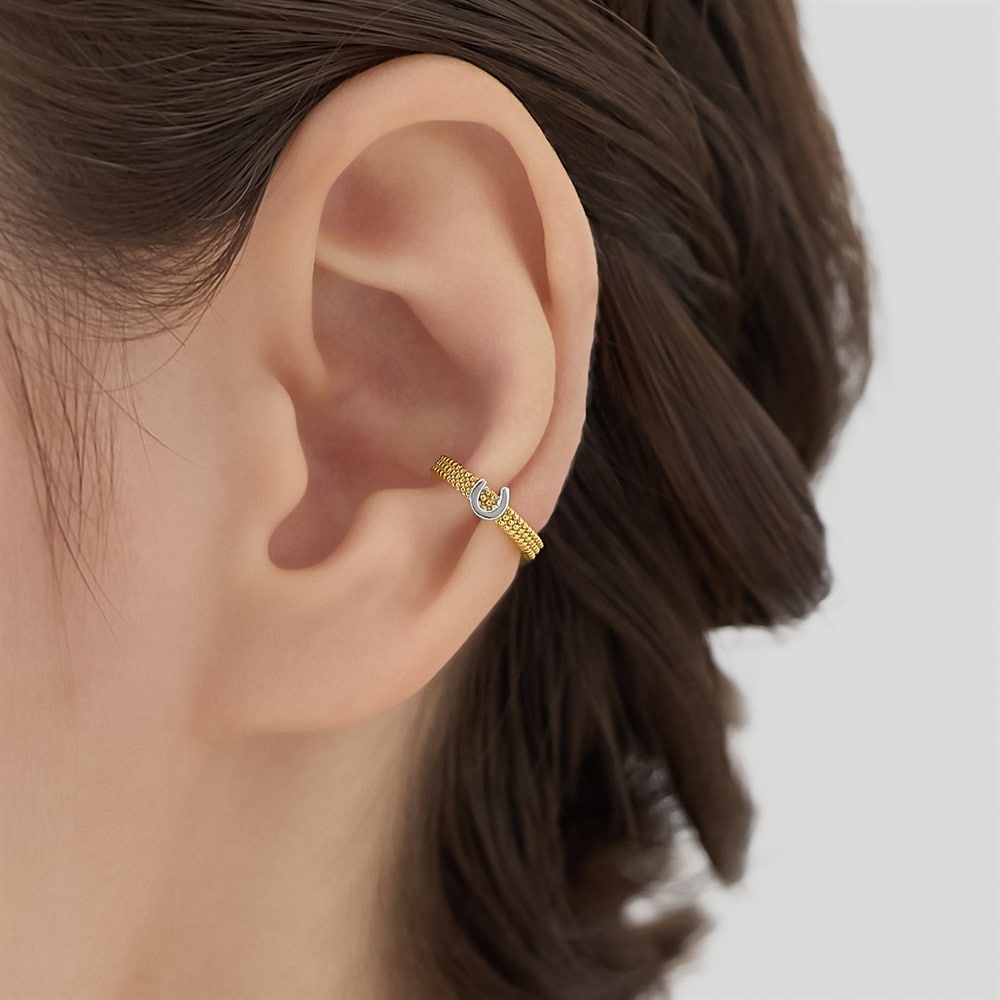 はみがき、着替え、今日のピアス -EARFLOW-カラーやモチーフでその日の気分をスイッチ-MOOD-繊細な粒模様が連なるラインに、幸運の「馬蹄」モチーフがアクセントのイヤーカフ。ピアスやイヤリングと一緒に着けることで、楽しげな耳元のスタイリングを叶えます。ピアスホールがなくても楽しめるデザインは、ご自身用のお守りジュエリーとしてはもちろん、大切な方へのギフトにもおすすめです。【同コレクションのアイテムはこちら】