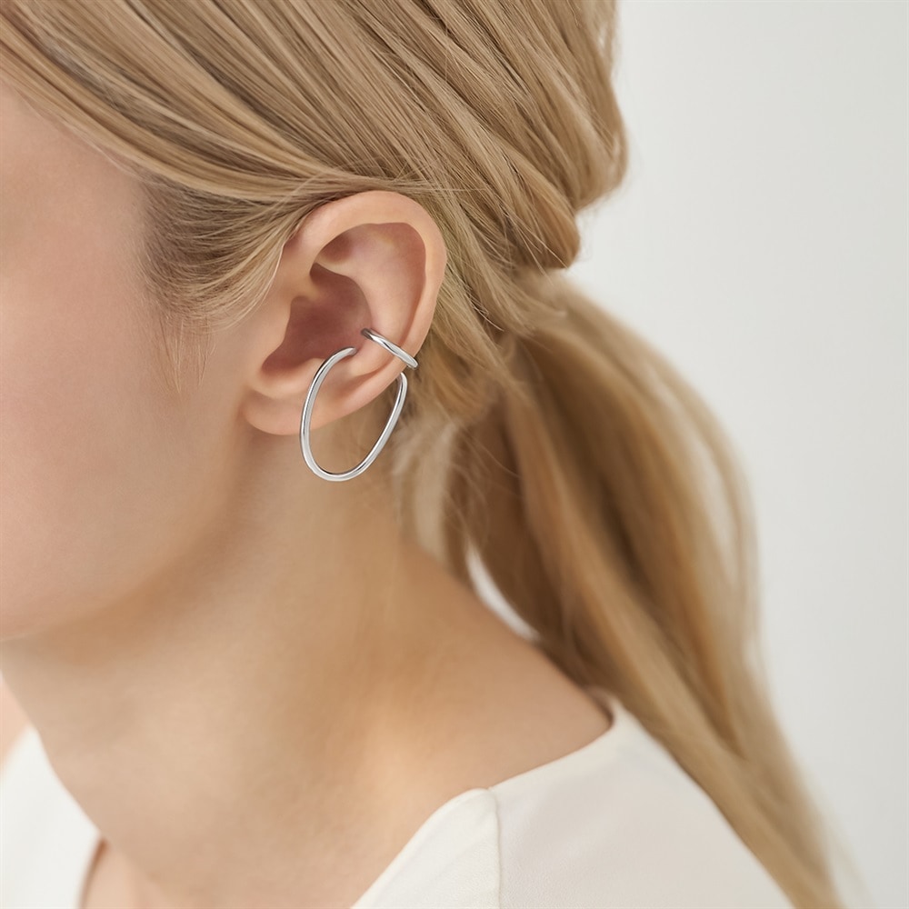 はみがき、着替え、今日のピアス -EARFLOW-重ね着けを楽しむ洗練されたミニマルデザイン-LAYERING-2本をレイヤードしたようなデザインの個性的なイヤーカフ。シンプルながらも存在感のあるフォルムは、スタイリングのアクセントになります。1粒のストーンスタッズピアスとのレイヤードがおすすめです。【同コレクションのアイテムはこちら】