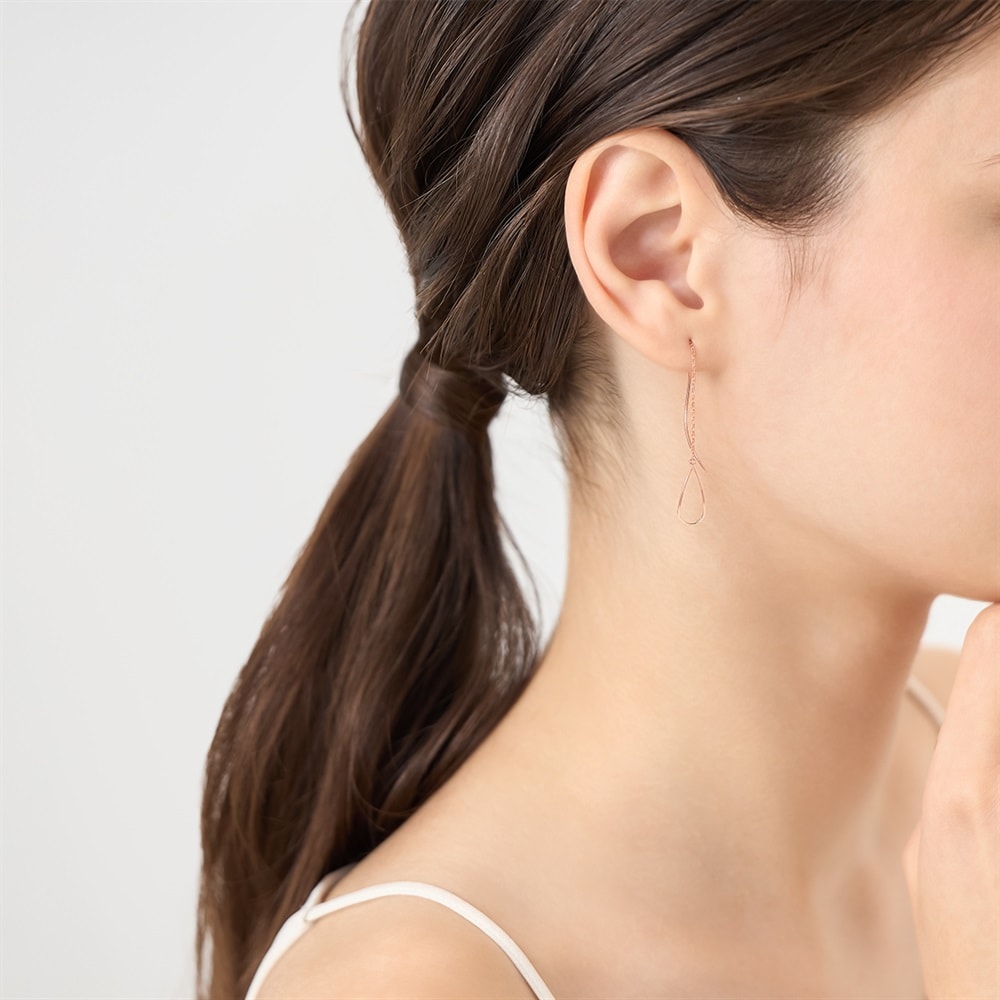 はみがき、着替え、今日のピアス -EARFLOW-重ね着けを楽しむ洗練されたミニマルデザイン-LAYERING-縦に伸びるチェーンが、顔周りをすっきりと見せてくれるピアス。先端のしずくモチーフが動くたびに揺らめき、軽やかな印象を演出します。肌馴染みの良いピンクゴールドカラーは大人らしさを引き立て、顔周りを明るい印象に。お好みの長さに調整して身に着けることができ、さまざまなシーンで活躍するアイテムです。【同コレクションのアイテムはこちら】