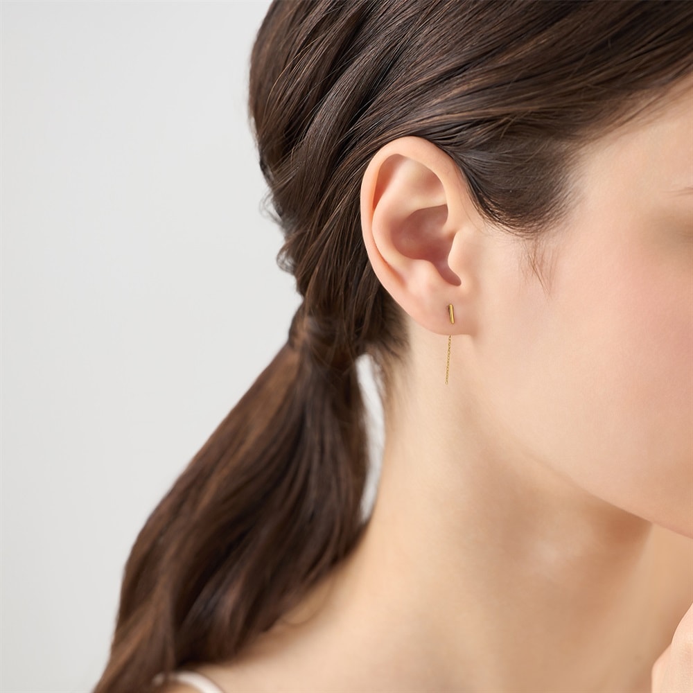 はみがき、着替え、今日のピアス -EARFLOW-重ね着けを楽しむ洗練されたミニマルデザイン-LAYERING-ふとした仕草に合わせてチェーンが軽やかに揺らめくピアス。チェーンを取り外してシンプルなバーだけでもお使いいただけます。縦のシルエットはフェイスラインを美しく、すっきりとした印象にしてくれます。オフィスシーンからお出かけシーンまで活躍する洗練されたデザインで、日々のコーディネートをより楽しむことができるアイテムです。【同コレクションのアイテムはこちら】