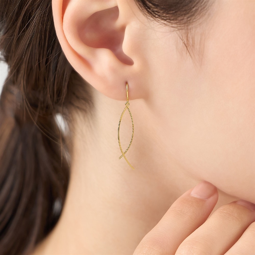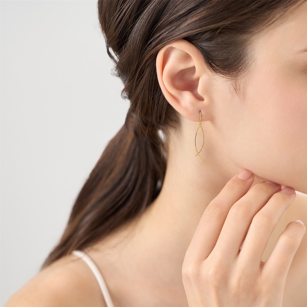 はみがき、着替え、今日のピアス -EARFLOW-重ね着けを楽しむ洗練されたミニマルデザイン-LAYERING-質感の異なる2本のラインが重なり合い、耳元に立体的なシルエットを描くピアス。動くたびに揺れて軽やかな雰囲気を纏います。縦に伸びるデザインは、フェイスラインをすっきりと見せ、大人らしさを演出してくれます。【同コレクションのアイテムはこちら】