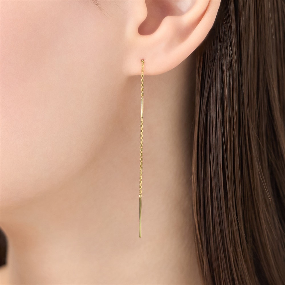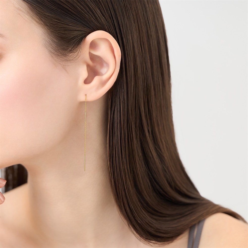 はみがき、着替え、今日のピアス -EARFLOW-重ね着けを楽しむ洗練されたミニマルデザイン-LAYERING-ふとした仕草に合わせてチェーンと地金が軽やかに揺らめくイエローゴールドカラーのピアス。お好みの長さに調整して身に着けることができます。縦に流れるデザインは、顔周りをすっきりとした印象に。オフィスシーンからお出かけシーンまで、幅広く使うことができるため、日々のコーディネートをより楽しむことができるアイテムです。【カラー違い】シルバーカラーはこちら >【同コレクションのアイテムはこちら】