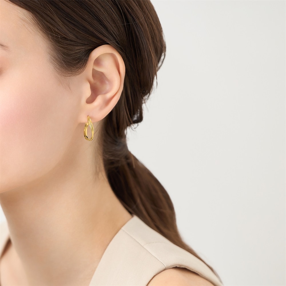 はみがき、着替え、今日のピアス -EARFLOW-重ね着けを楽しむ洗練されたミニマルデザイン-LAYERING-流れるような曲線が美しく、軽やかな印象で身に着けることができるイエローゴールドカラーのピアス。シンプルな装いに合わせるだけでトレンド感のある雰囲気が叶い、オフィススタイルから休日のお出かけまでさまざまに活躍します。洗練されたディテールが顔周りをすっきりと見せ、日常のコーディネートをより一層楽しむことができるアイテムです。【同コレクションのアイテムはこちら】
