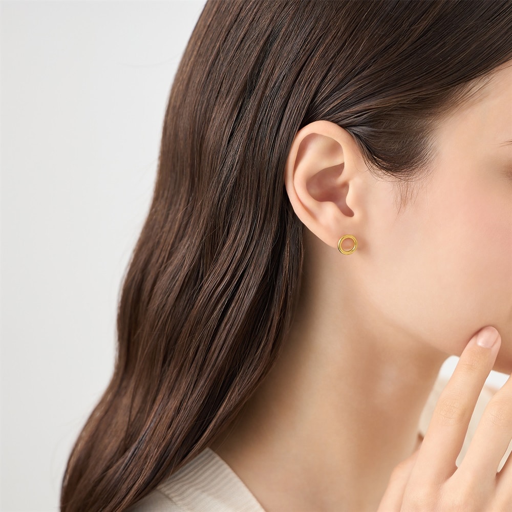 はみがき、着替え、今日のピアス -EARFLOW-重ね着けを楽しむ洗練されたミニマルデザイン-LAYERING-イエローゴールドカラーが顔周りを明るく華やかに彩る、シンプルなサークルモチーフのピアス。主張しすぎないサイズ感が、オフィスでのジャケットスタイルから休日のカジュアルな装いまでシーンを問わず活躍します。流行や年齢を問わず、時代を超えて永く愛用できるデザインは、ご自身へのご褒美にはもちろん、大切な方へのギフトにもおすすめです。【同コレクションのアイテムはこちら】