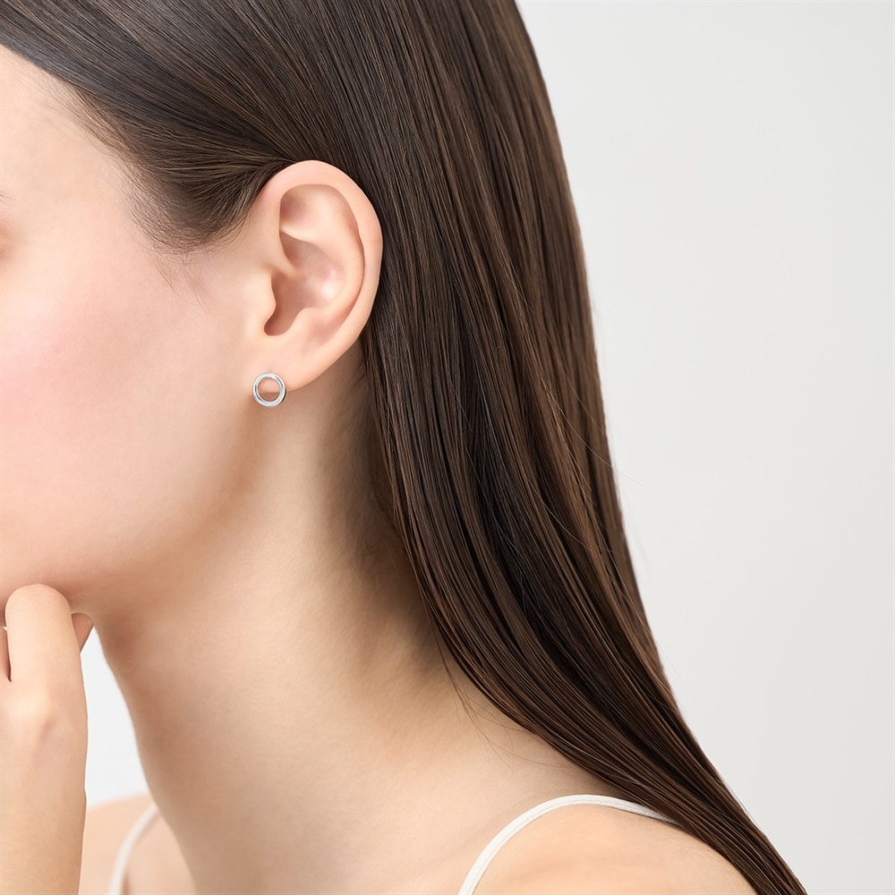 はみがき、着替え、今日のピアス -EARFLOW-重ね着けを楽しむ洗練されたミニマルデザイン-LAYERING-ロジウムコーティングが顔周りを明るく華やかに彩る、シンプルなサークルモチーフのピアス。主張しすぎないサイズ感が、オフィスでのジャケットスタイルから休日のカジュアルな装いまでシーンを問わず活躍します。流行や年齢を問わず、時代を超えて永く愛用できるデザインは、ご自身へのご褒美にはもちろん、大切な方へのギフトにもおすすめです。【同コレクションのアイテムはこちら】