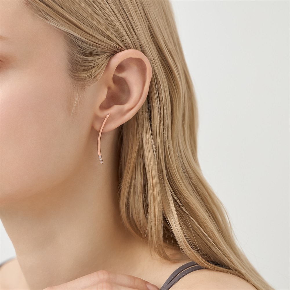 はみがき、着替え、今日のピアス -EARFLOW-重ね着けを楽しむ洗練されたミニマルデザイン-LAYERING-シンプルな大振りのラインピアス。着けた時にピアスが耳の上の位置になるようにこだわったデザイン。顔周りを華やかな印象にしてくれます。ストーンのイヤーカフとのレイヤードがおすすめです。【同コレクションのアイテムはこちら】