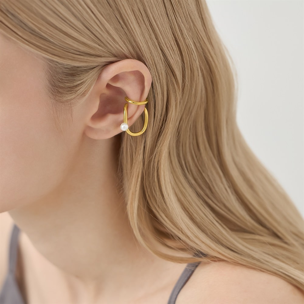 はみがき、着替え、今日のピアス -EARFLOW-重ね着けを楽しむ洗練されたミニマルデザイン-LAYERING-2本をレイヤードしたようなデザインの個性的なイヤーカフ。パールがほどよいアクセントになっています。スタイリングのアクセントにおすすめです。※天然石・天然素材を使用しているため、実際の色味や風合いが異なる場合がございます。【同コレクションのアイテムはこちら】