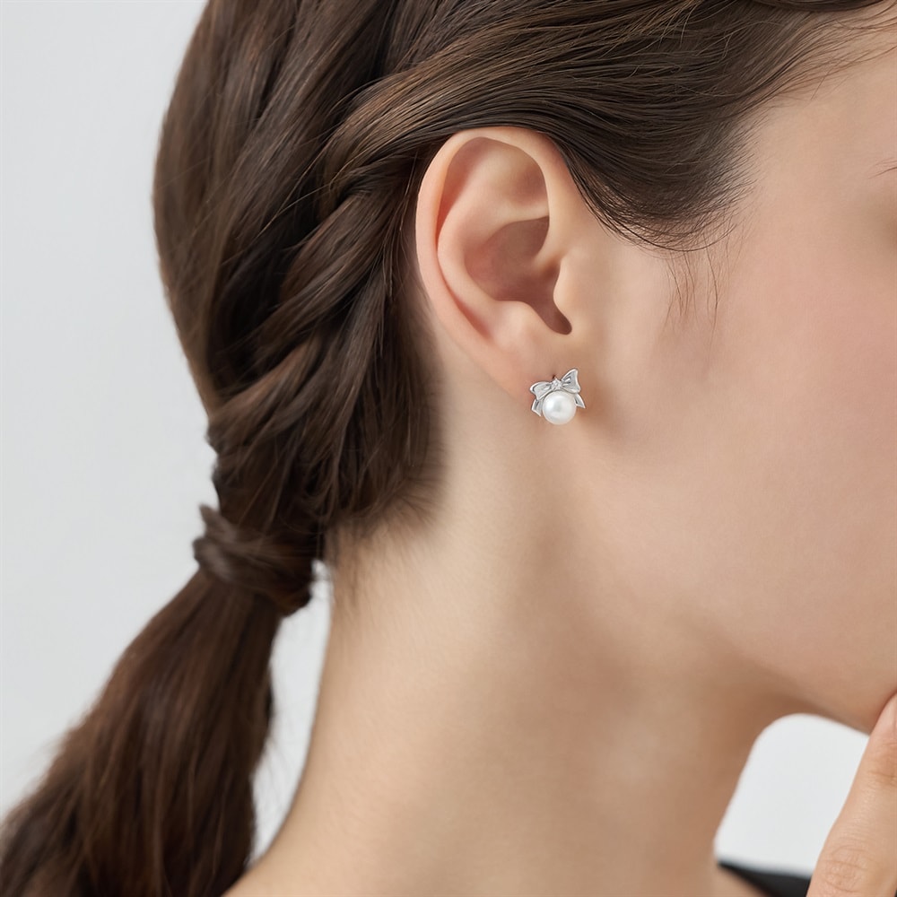 はみがき、着替え、今日のピアス -EARFLOW-フォーマルにも映える華やかさ ギフトにも最適-OCCASION-パールのやわらかな輝きに、ロジウムコーティングのリボンがアクセントとなるピアス。「結びつき」を象徴するリボンと、「美と健康」を象徴するパール、2つのラッキーモチーフが、あなたの毎日に優しく寄り添います。身に着けやすいサイズ感で、オフィスでのさり気ないお洒落から特別なシーンまで活躍します。頑張る自分へのご褒美や、大切な方へのギフトにもおすすめです。※天然石・天然素材を使用しているため、実際の色味や風合いが異なる場合がございます。【同コレクションのアイテムはこちら】