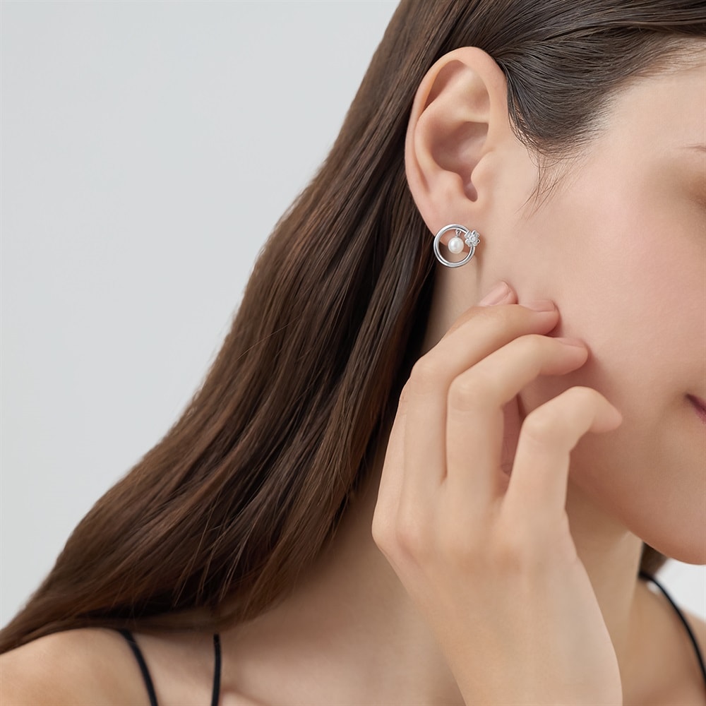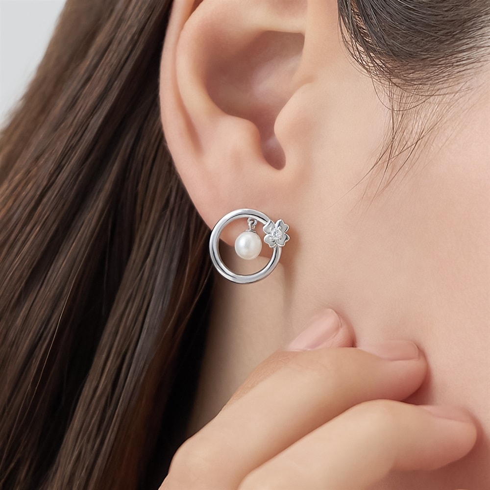 はみがき、着替え、今日のピアス -EARFLOW-フォーマルにも映える華やかさ ギフトにも最適-OCCASION-「永遠」や「良縁」を象徴するサークルモチーフに、パールと小花の甘さをプラスしたピアス。耳元でゆらゆらと揺れるパールが光を放ち、ふとした瞬間もドラマチックに彩ります。ロジウムコーティングの清涼感ある輝きは、甘さを抑えた大人の透明感を演出し、さまざまなシーンで活躍します。※天然石・天然素材を使用しているため、実際の色味や風合いが異なる場合がございます。【同コレクションのアイテムはこちら】