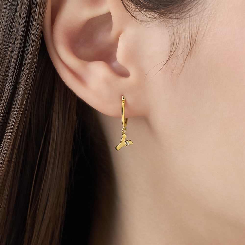 はみがき、着替え、今日のピアス -EARFLOW-自分仕様にカスタマイズ 選ぶ楽しさをその手に-CUSTOM FIT-ゴシック体のアルファベット「Y」のチャームが揺れる、フープ型の片耳ピアス。アルファベットが斜めに配されることで動きと抜け感が生まれ、エレガントなアクセントをプラスします。片耳ずつ好きなイニシャルのピアスを選び、両耳でコーディネートするスタイルもおすすめです。【同コレクションのアイテムはこちら】