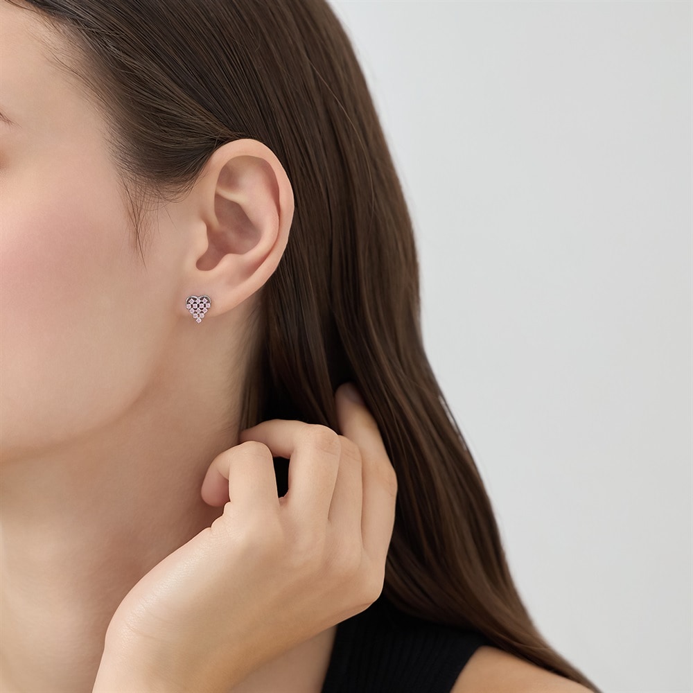 はみがき、着替え、今日のピアス -EARFLOW-カラーやモチーフでその日の気分をスイッチ-MOOD-ベールのように広がるキュービックジルコニアが上品にきらめく、ハートシルエットの大人フェミニンなスタッドピアス。甘くなりがちなモチーフも、涼やかな輝きとすっきりとしたフォルムで、大人の女性に似合う洗練された印象に。淡いピンクのキュービックジルコニアとロジウムコーティングの組み合わせが、甘さの中に新鮮な表情をプラス。大切な方へのギフトにもおすすめです。【同コレクションのアイテムはこちら】