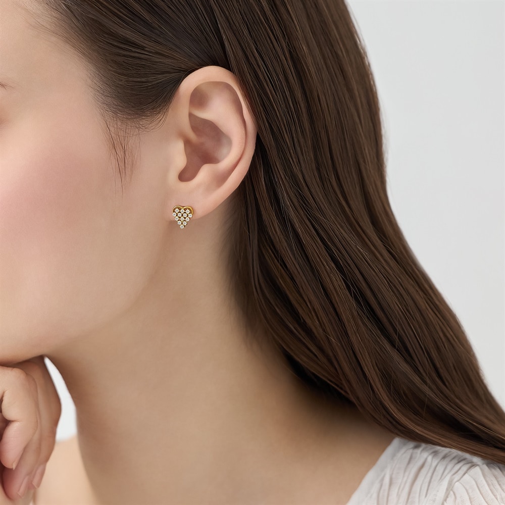 はみがき、着替え、今日のピアス -EARFLOW-カラーやモチーフでその日の気分をスイッチ-MOOD-ベールのように広がるキュービックジルコニアが上品にきらめく、ハートシルエットの大人フェミニンなスタッドピアス。甘くなりがちなモチーフも、涼やかな輝きとすっきりとしたフォルムで、大人らしい洗練された印象に。シンプルなデザインのため、大切な方へのギフトにもおすすめです。【同コレクションのアイテムはこちら】