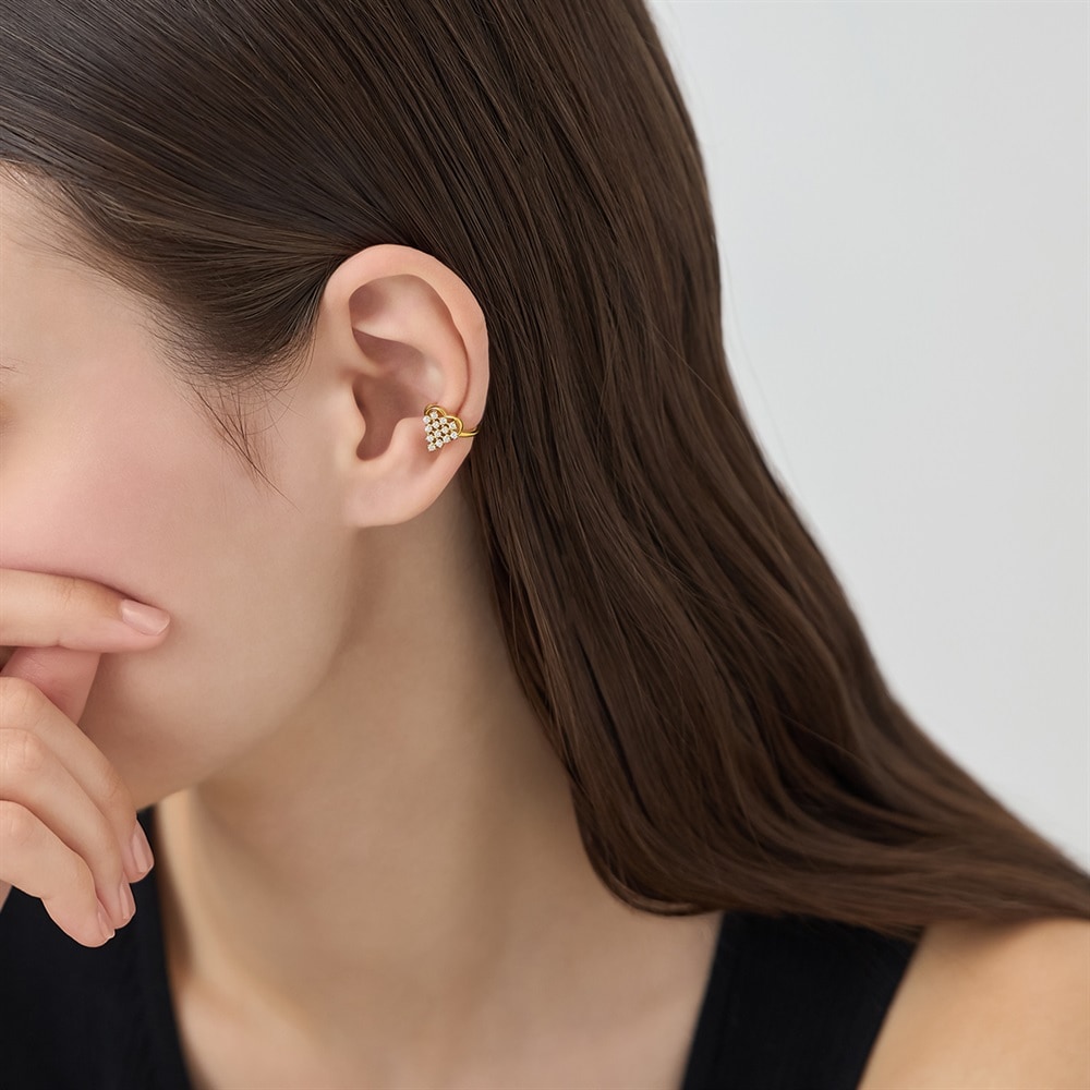 はみがき、着替え、今日のピアス -EARFLOW-カラーやモチーフでその日の気分をスイッチ-MOOD-ベールのように広がるキュービックジルコニアが上品にきらめく、ハートシルエットの大人フェミニンなイヤーカフ。甘くなりがちなモチーフも、涼やかな輝きとすっきりとしたフォルムで、大人らしい洗練された印象に。シンプルな印象のため、大切な方へのギフトにもおすすめです。【同コレクションのアイテムはこちら】