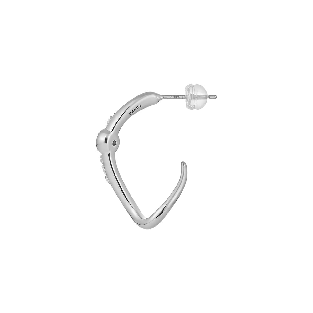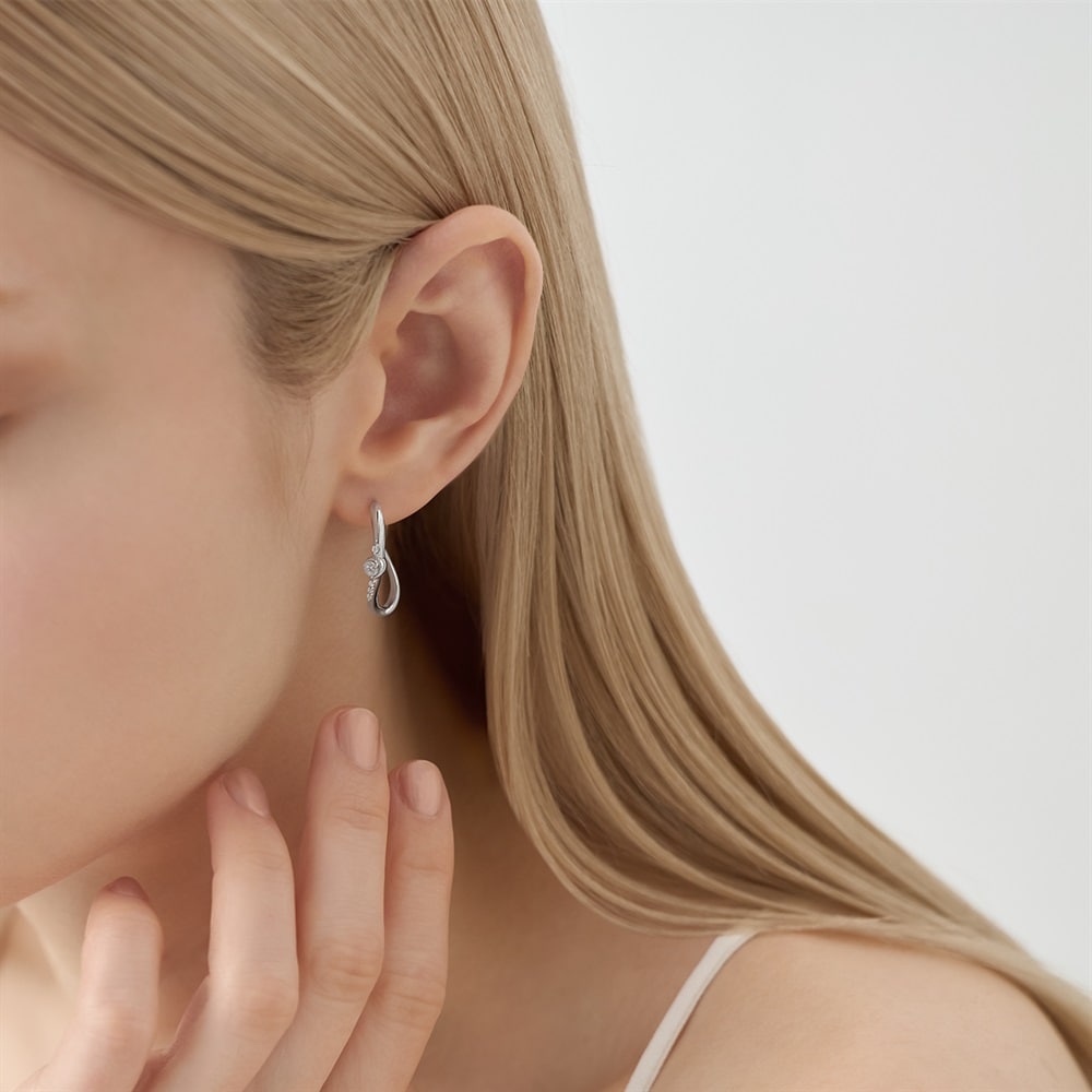 はみがき、着替え、今日のピアス -EARFLOW-毎日着けたいシンプルで合わせやすい定番-ESSENTIALS-ゆったりとしたしなやかな曲線のピアス。軽やかな立体感のあるラインに沿ってキュービックジルコニアが輝きを放ち、耳元にきらめきをプラスします。センターには運河の流れが包み込むようなデザインの石座にキュービックジルコニアをセッティング。ロジウムコーティングの地金が肌に溶け込むようになじみ、澄んだ光を反射して上品に輝きます。シンプルな中にさり気ない個性と女性らしさを引き立ててくれるデザインです。角度や仕草により表情を変える美しいフォルムは、着けるたびに気分を高めてくれるアイテムです。【同コレクションのアイテムはこちら】
