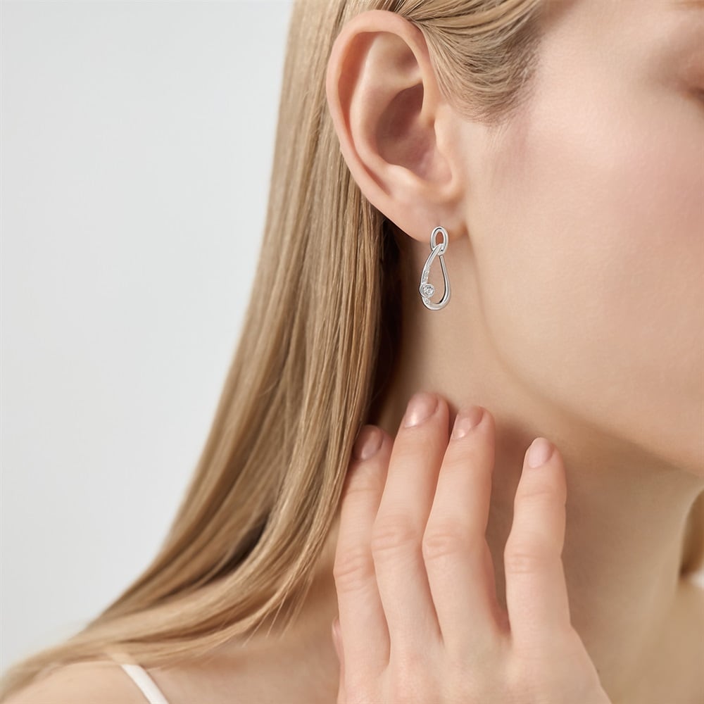 はみがき、着替え、今日のピアス -EARFLOW-毎日着けたいシンプルで合わせやすい定番-ESSENTIALS-たっぷりとしたオーバルとしずく型のシルエットが印象的なデザインのピアス。存在感のある立体的なラインには、運河の流れが包み込むような石座にキュービックジルコニアをセッティングし、その周囲をメレ石が繊細に彩ります。耳元に華やぎを添え、さり気ない個性と女性らしさを引き立ててくれるデザインです。どんなコーディネートにも自然に溶け込む洗練された佇まいで、日常使いからパーティーシーンまで、シーンを選ばずお使いいただけます。【同コレクションのアイテムはこちら】