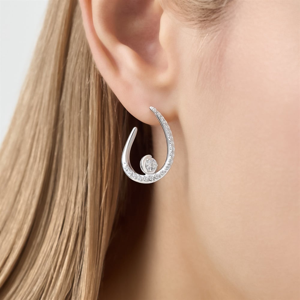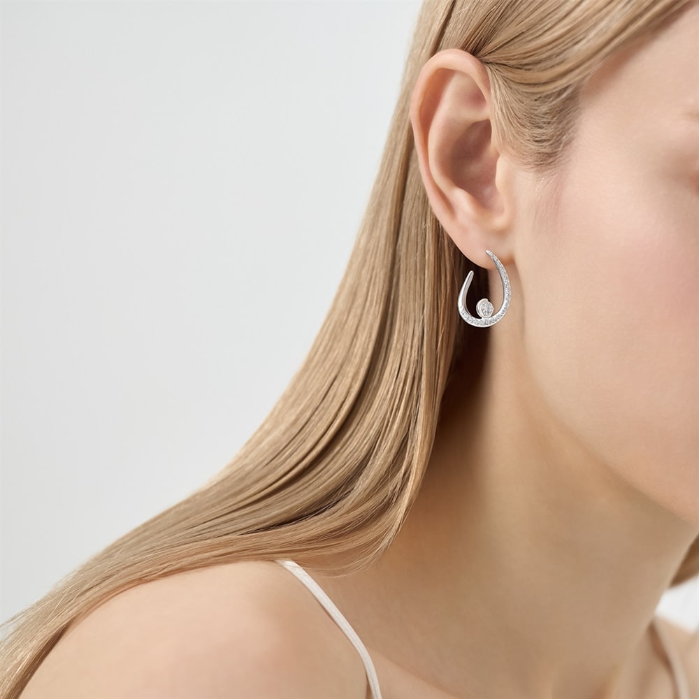 はみがき、着替え、今日のピアス -EARFLOW-毎日着けたいシンプルで合わせやすい定番-ESSENTIALS-地金のラインに贅沢に使用したキュービックジルコニアを流れるように添えた魅力に溢れたピアス。センターのキュービックジルコニアは運河の流れのように包み込むようなデザインの石座で、顔周りを明るく華やかに演出します。さり気ない個性と女性らしさを引き立ててくれるデザインです。どんなコーディネートにも自然に溶け込む洗練された佇まいで、日常使いからパーティーシーンまで、シーンを選ばずお使いいただけます。【同コレクションのアイテムはこちら】