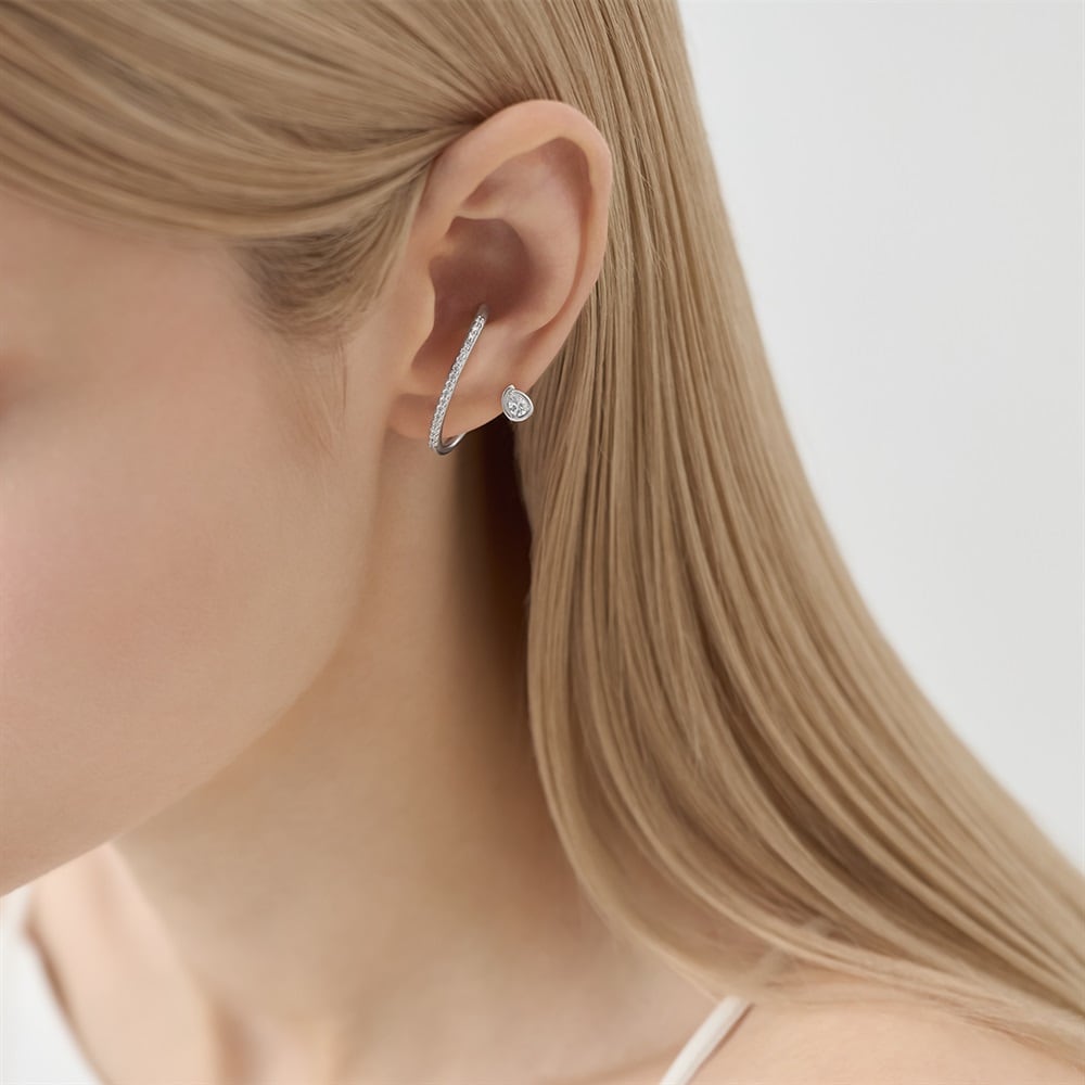 はみがき、着替え、今日のピアス -EARFLOW-毎日着けたいシンプルで合わせやすい定番-ESSENTIALS-ひとつ身に着けるだけで日常の装いが格上げさる2連風イヤーカフ。贅沢にキュービックジルコニアをあしらったラインと、運河の流れが包み込むようなデザインの石座がアクセントの、ペアシェイプの1粒がモダンな印象を与えてくれます。存在感があるデザインながらも、顔周りをすっきりとした印象に見せてくれます。ひとつ着けるだけで普段の装いが洗練され日常使いからパーティーシーンまで、シーンを選ばずお使いいただけます。【同コレクションのアイテムはこちら】