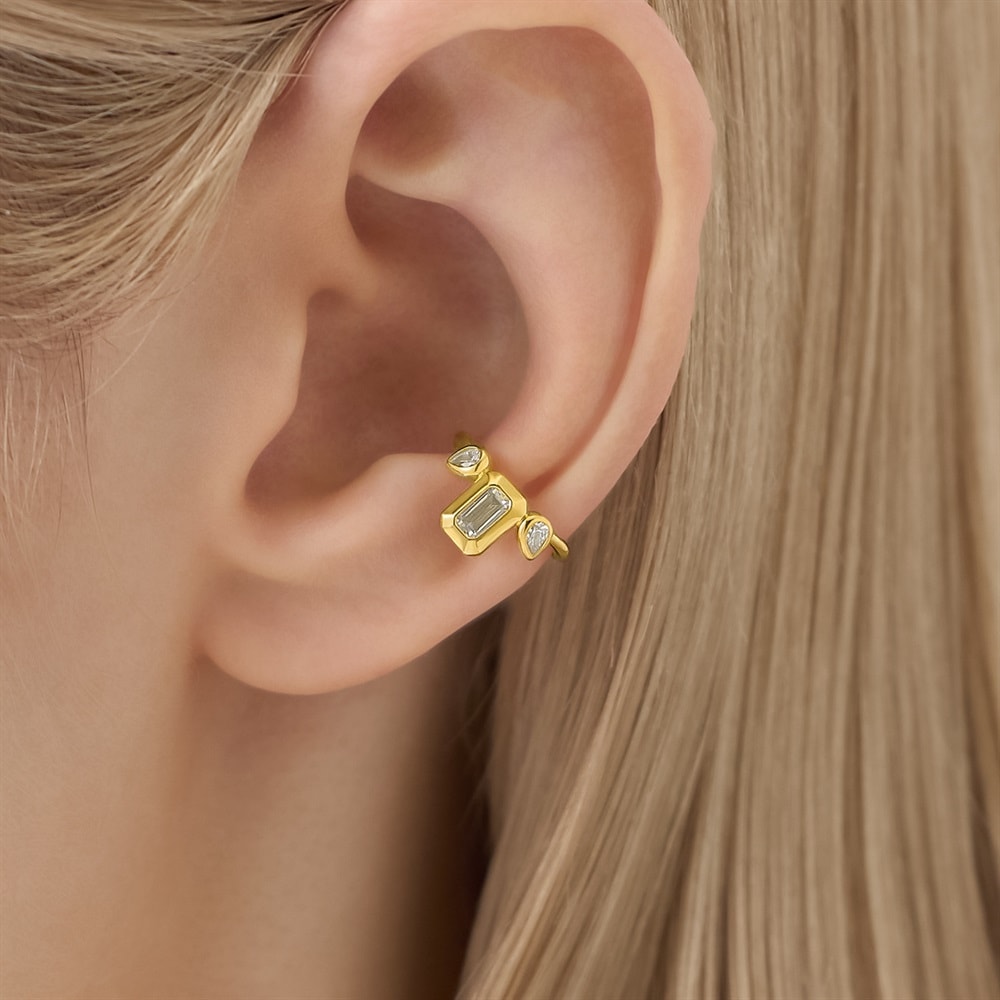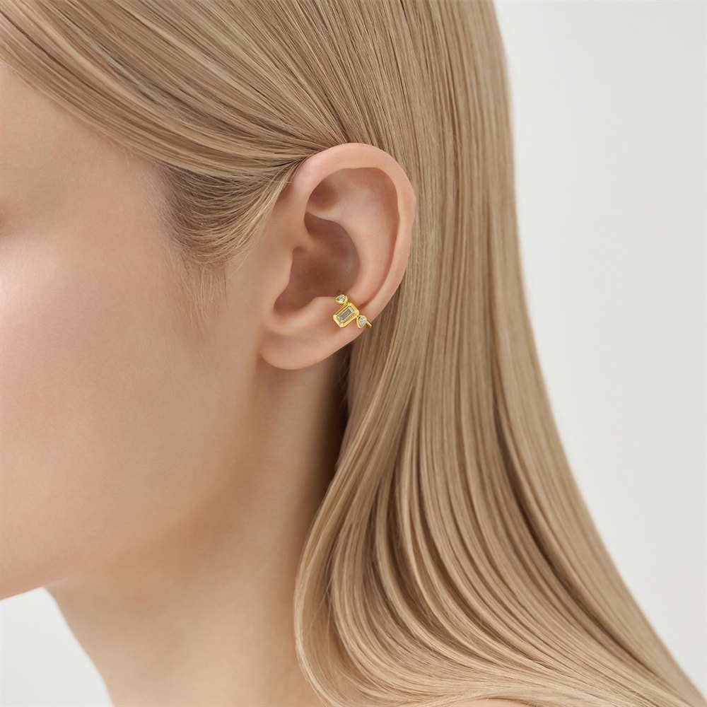 はみがき、着替え、今日のピアス -EARFLOW-毎日着けたいシンプルで合わせやすい定番-ESSENTIALS-異なったカットの石の輝きが印象的なイヤーカフ。イエローゴールドカラーが肌になじみ、動くたびに光を反射してリュクスな輝きを放ちます。シンプルながら存在感があり、コーディネートを品のある印象に仕上げてくれます。シーンを選ばずお使いいただけるデザインなので、ビジネスシーンや特別なデート、カジュアルな日常使いにもぴったりです。自分へのプレゼントはもちろん、大切な方への贈り物としてもおすすめです。【同コレクションのアイテムはこちら】
