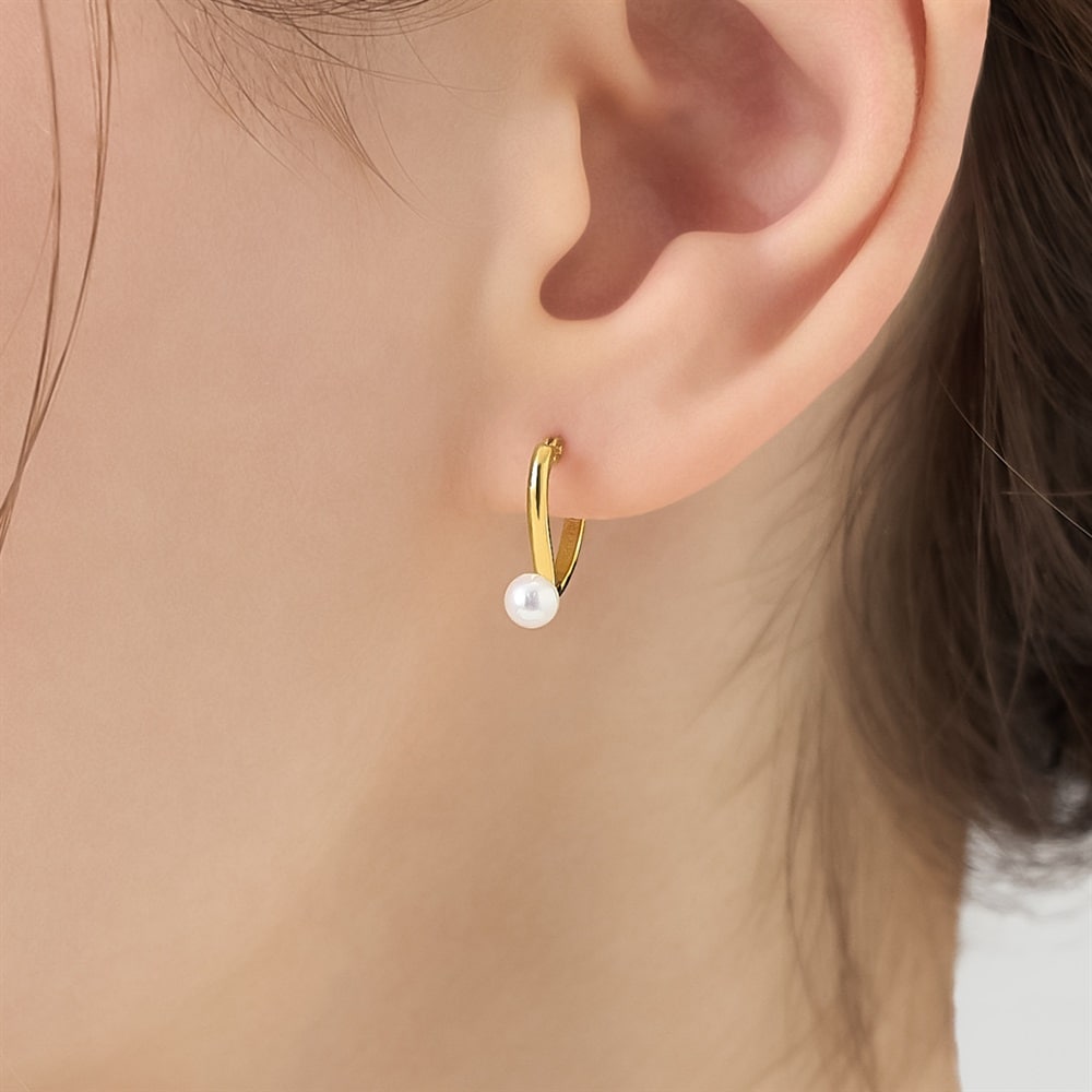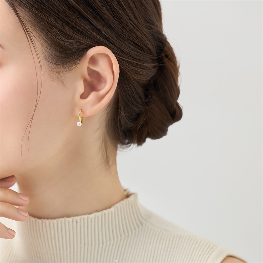 はみがき、着替え、今日のピアス -EARFLOW-フォーマルにも映える華やかさギフトにも最適-OCCASION-なめらかな地金のラインが描く、立体的なV字フォルムのフープ風ピアス。先端にあしらわれているパールが柔らかさを演出します。モードな装いからオフィススタイルまで幅広くお楽しみいただけるアイテムです。※天然石・天然素材を使用しているため、実際の色味や風合いが異なる場合がございます。【同コレクションのアイテムはこちら】