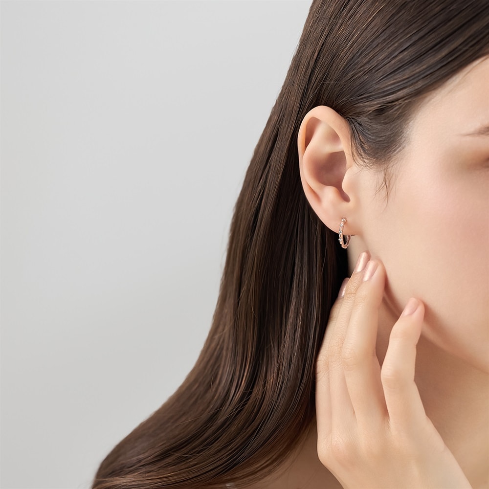 はみがき、着替え、今日のピアス(イヤリング) -EARFLOW-フォーマルにも映える華やかさギフトにも最適-OCCASION-ふっくらとした地金ときらめくキュービックジルコニアが連なるフープイヤリング。正面見が縦に伸びるデザインのため、顔周りをすっきりと見せてくれます。ネジ式のパーツはフィット感を微調整することができ、長時間の着用でも安心です。※天然石・天然素材を使用しているため、実際の色味や風合いが異なる場合がございます。【同コレクションのアイテムはこちら】