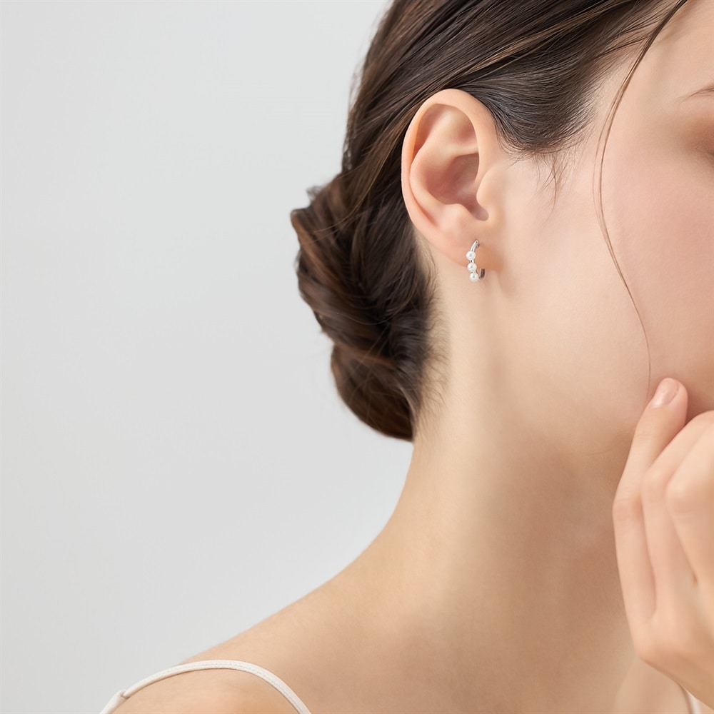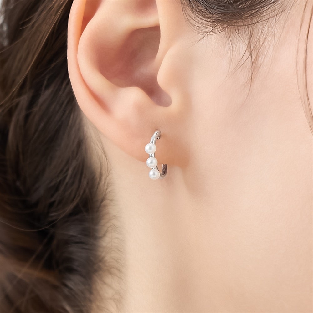 はみがき、着替え、今日のピアス -EARFLOW-フォーマルにも映える華やかさギフトにも最適-OCCASION-なめらかな地金のラインに3粒のパールがあしらわれたフープ風ピアス。縦に並ぶパールは視線を集め、フェイスラインをすっきりと見せてくれます。シンプルなデザインのため、オフィスシーンで活躍します。※天然石・天然素材を使用しているため、実際の色味や風合いが異なる場合がございます。【同コレクションのアイテムはこちら】