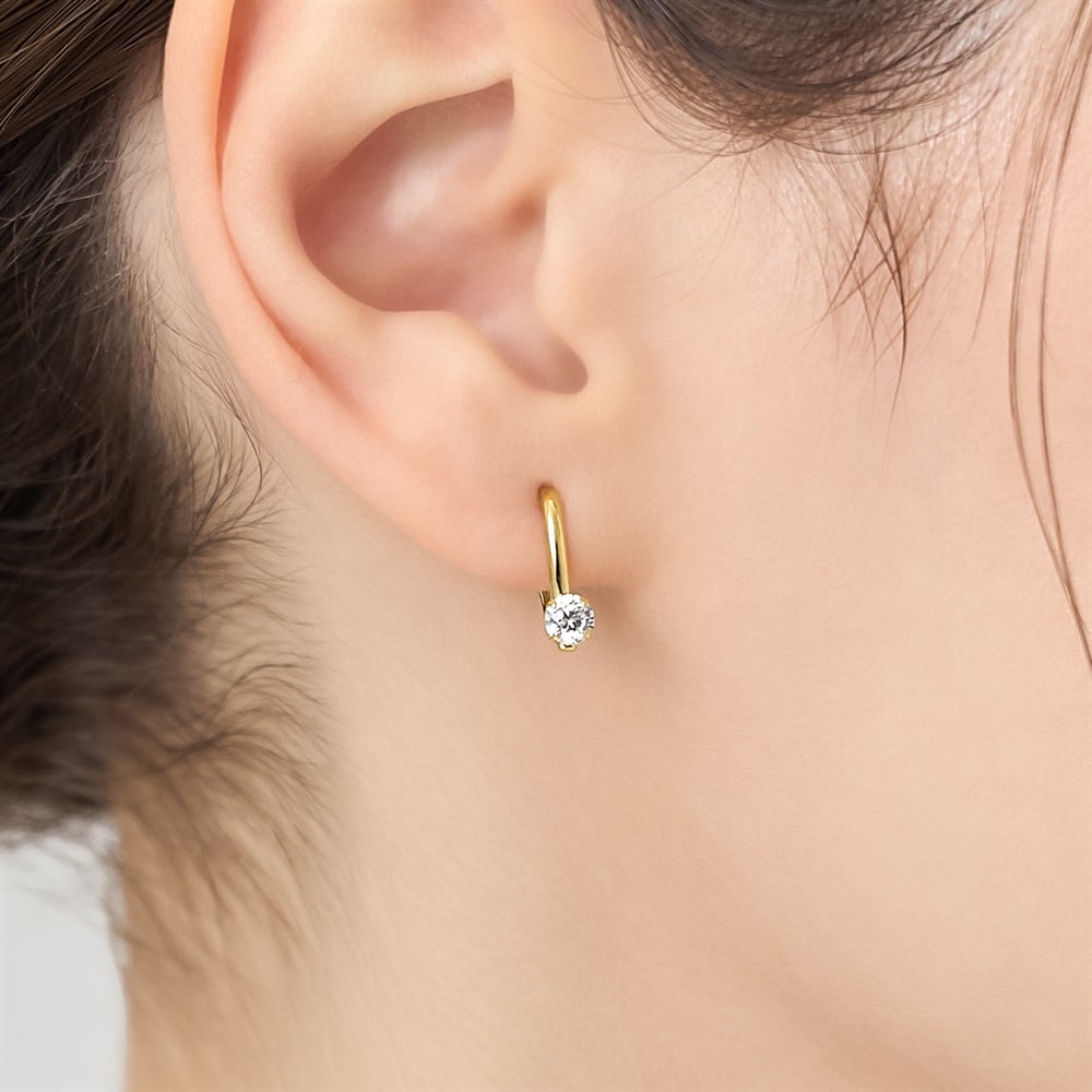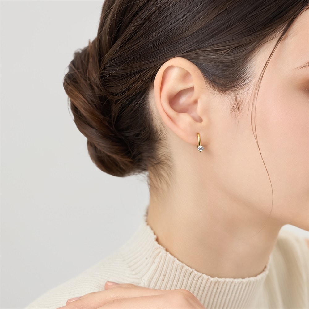 はみがき、着替え、今日のピアス -EARFLOW-フォーマルにも映える華やかさギフトにも最適-OCCASION-なめらかな地金のラインにキュービックジルコニアがきらめくイエローゴールドカラーのイヤリング。日常のコーディネートに合わせやすいシンプルなデザインのため、オフィスシーンからお出かけまで活躍します。ネジ式のイヤリングパーツはフィット感を微調整することができ、長時間の着用でも安心です。【同コレクションのアイテムはこちら】