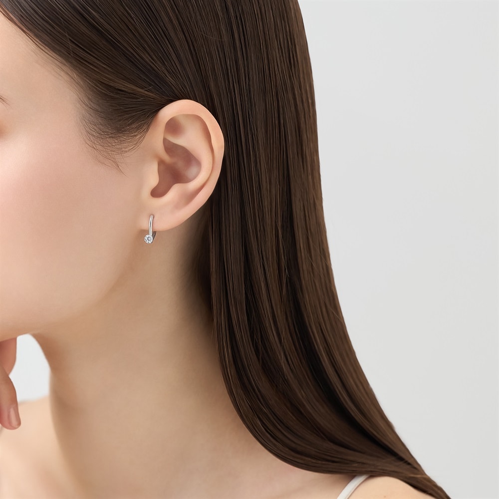はみがき、着替え、今日のピアス -EARFLOW-フォーマルにも映える華やかさギフトにも最適-OCCASION-なめらかな地金のラインにキュービックジルコニアがきらめくロジウムコーティングのイヤリング。日常のコーディネートに合わせやすいシンプルなデザインのため、オフィスシーンからお出かけまで活躍します。ネジ式のイヤリングパーツはフィット感を微調整することができ、長時間の着用でも安心です。【同コレクションのアイテムはこちら】
