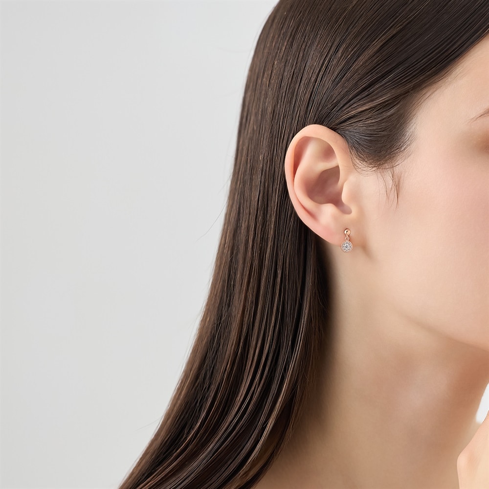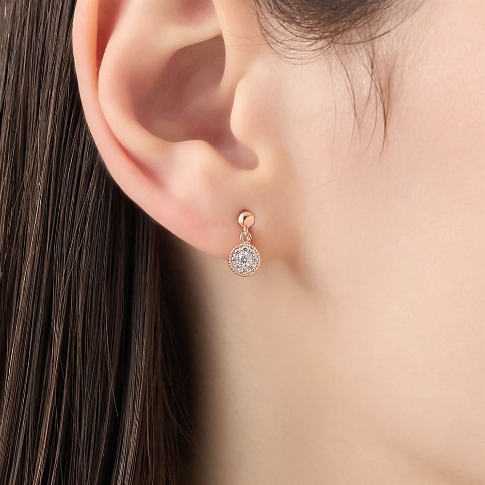 はみがき、着替え、今日のピアス -EARFLOW-フォーマルにも映える華やかさギフトにも最適-OCCASION-ミル打ちで縁取ったサークルに、きらめくキュービックジルコニアを敷き詰めたピンクゴールドカラーのイヤリング。華やかなデザインのため、顔周りを明るく魅せてくれます。カジュアルなスタイルからオフィススタイルまで幅広くご使用いただけます。【同コレクションのアイテムはこちら】