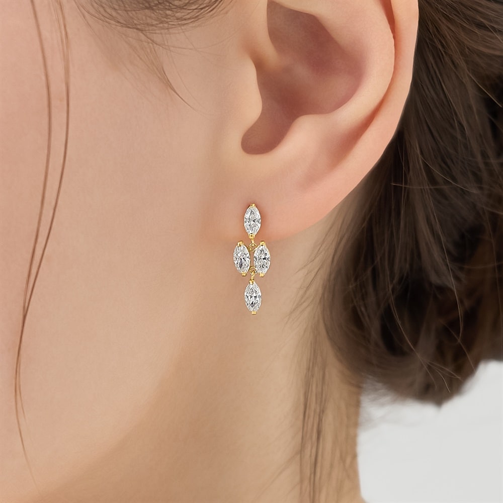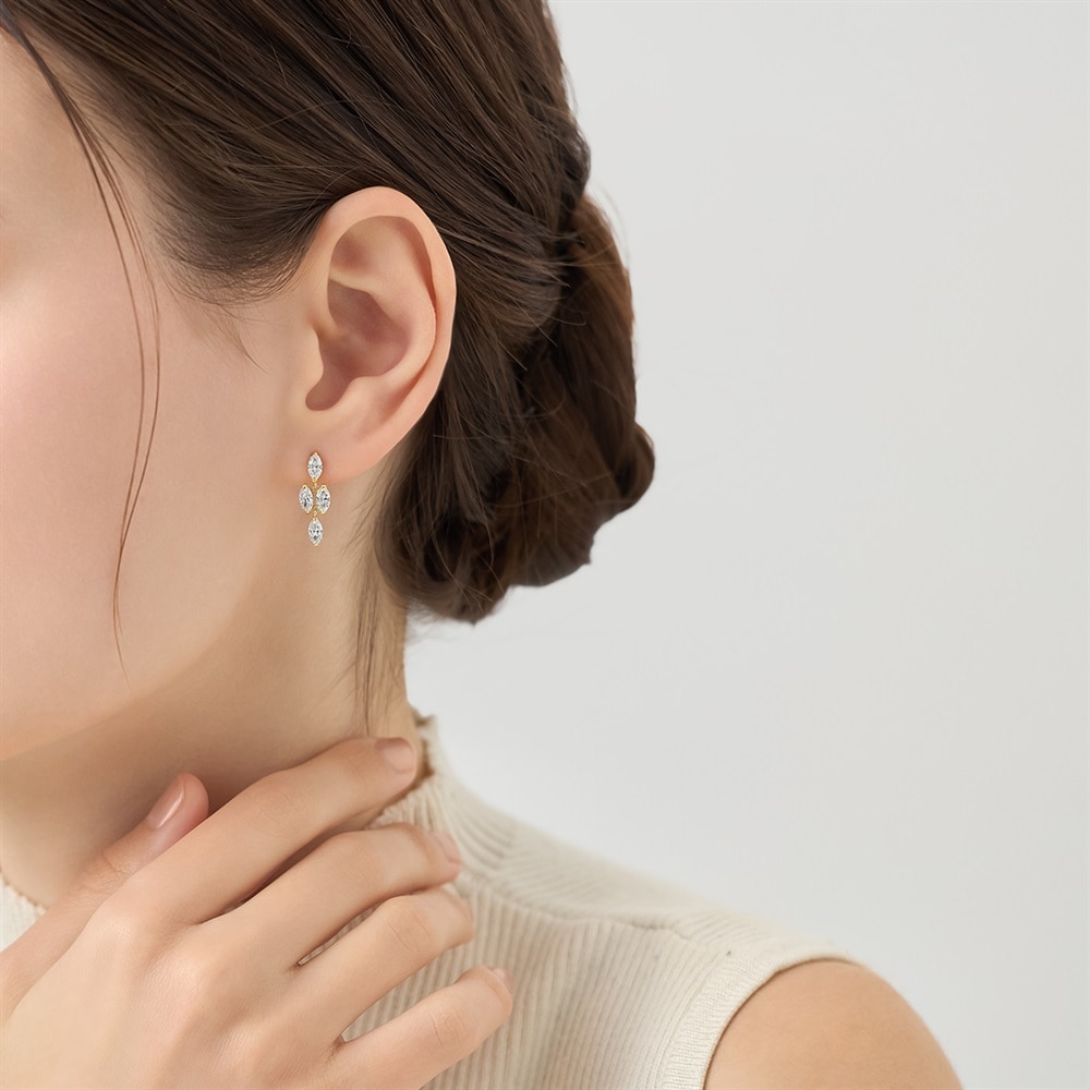 はみがき、着替え、今日のピアス -EARFLOW-フォーマルにも映える華やかさギフトにも最適-OCCASION-マーキースカットのキュービックジルコニアを華やかにあしらったイエローゴールドカラーのピアス。存在感のある輝きは、顔周りを明るく華やかに彩ります。特別な日に身に着けるジュエリーとしておすすめです。【同コレクションのアイテムはこちら】