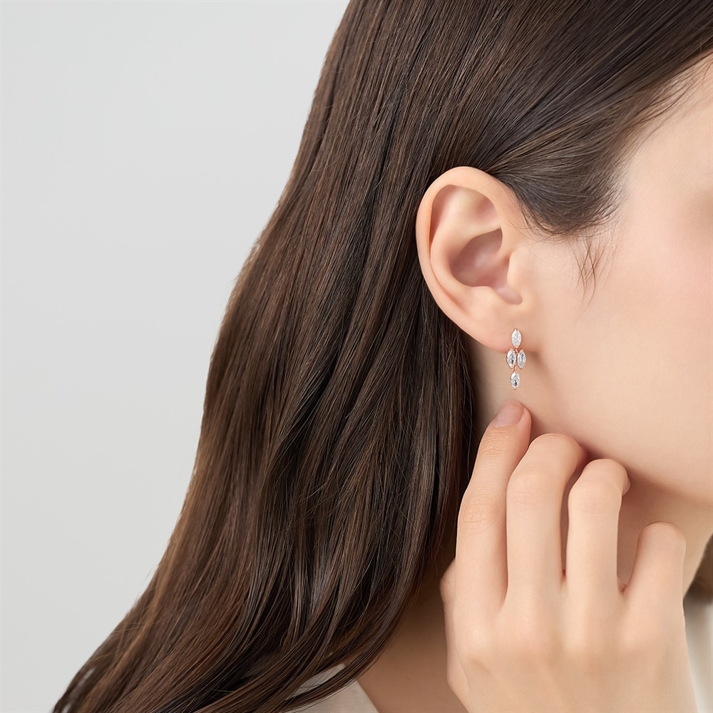 はみがき、着替え、今日のピアス -EARFLOW-フォーマルにも映える華やかさギフトにも最適-OCCASION-マーキースカットのキュービックジルコニアを華やかにあしらったピンクゴールドカラーのピアス。存在感のある輝きは、顔周りを明るく華やかに彩ります。特別な日に身に着けるジュエリーとしておすすめです。【同コレクションのアイテムはこちら】