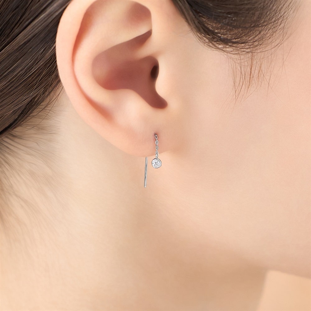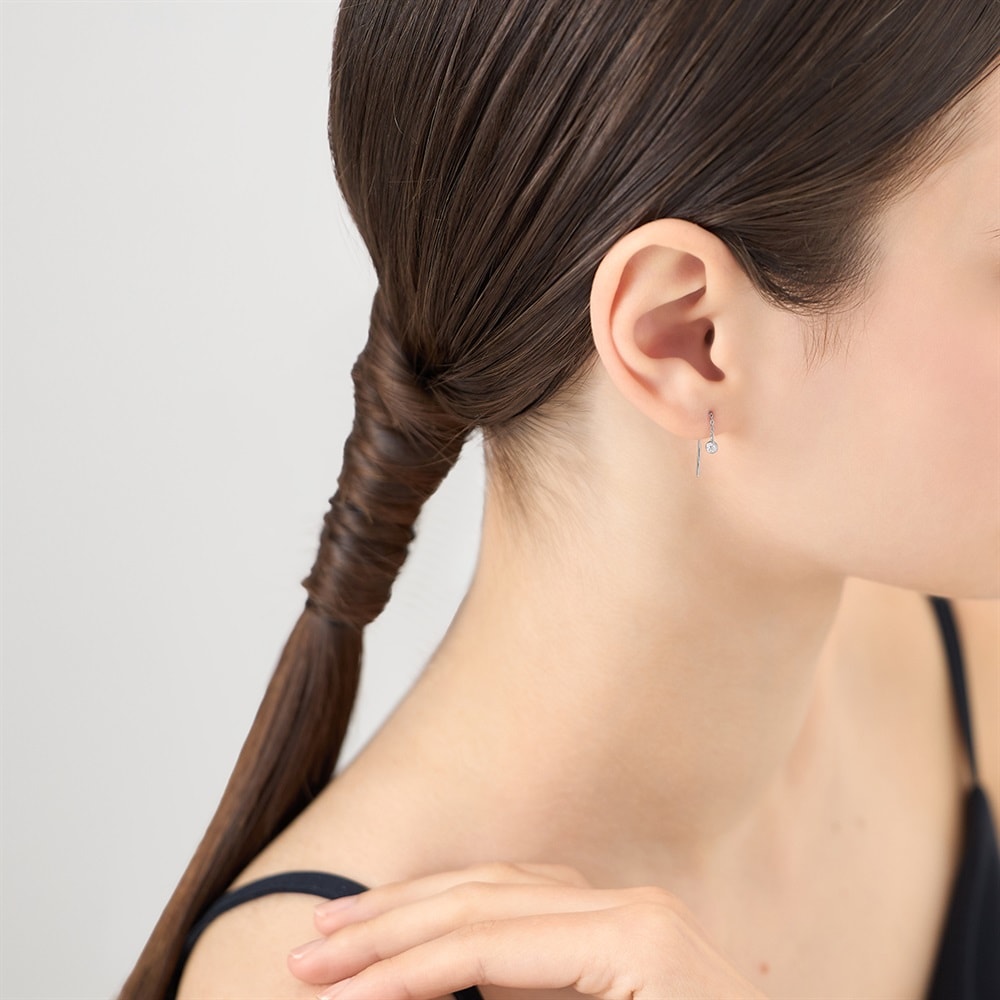 はみがき、着替え、今日のピアス -EARFLOW-重ね着けを楽しむ洗練されたミニマルデザイン-LAYERING-動きに合わせて軽やかなチェーンと共にキュービックジルコニアがきらめくピアス。耳元で揺れ動く繊細なディテールが、顔周りを華やかに彩ります。ロジウムコーティングのすっきりとした輝きが肌に透明感を与え、清潔感のある雰囲気を演出。シーンを問わずお使いいただけるシンプルなデザインのため、大切な方へのギフトやご自身へのご褒美にもおすすめです。【同コレクションのアイテムはこちら】