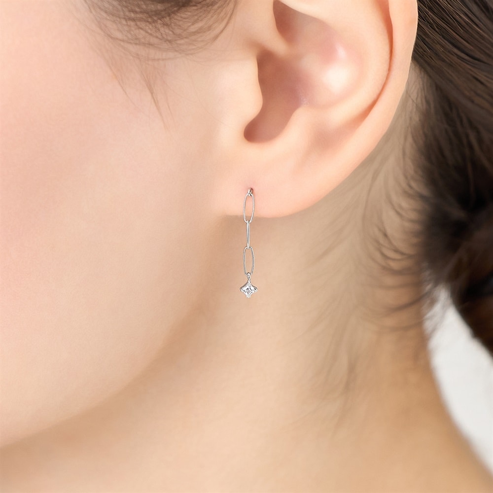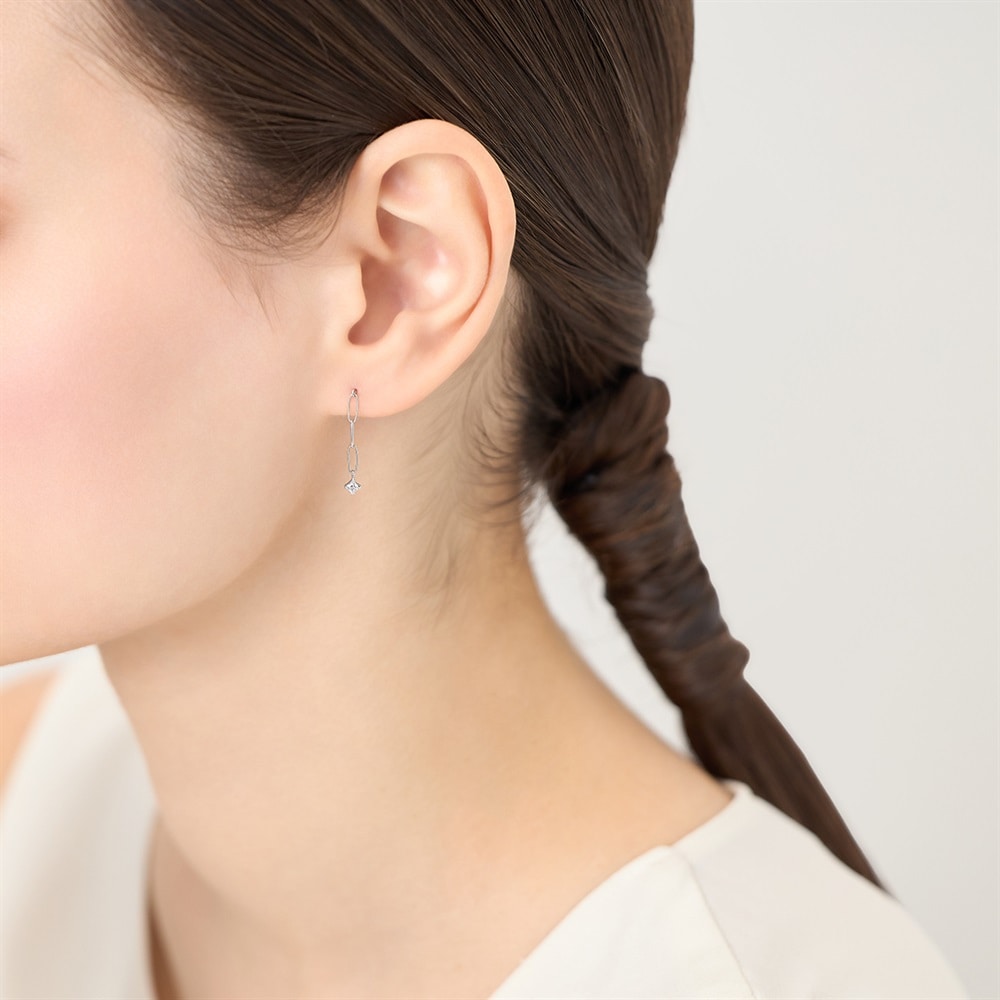 はみがき、着替え、今日のピアス -EARFLOW-重ね着けを楽しむ洗練されたミニマルデザイン-LAYERING-デザインチェーンときらめくキュービックジルコニアが動くたびに揺れる、軽やかな印象のピアス。縦のシルエットは顔周りをすっきりと見せ、日常のコーディネートのアクセントになります。オフィスでのきれいめコーデにはもちろん、カジュアルなお出かけスタイルにもおすすめです。【同コレクションのアイテムはこちら】