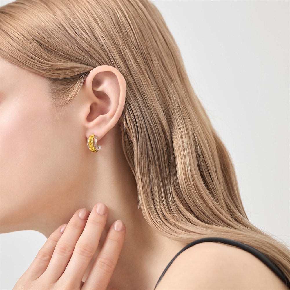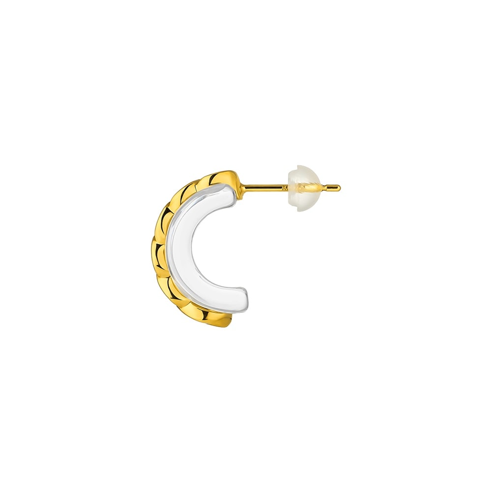 はみがき、着替え、今日のピアス -EAR FLOW-トレンドを纏い新しい自分に出会うセレクト-TREND LINE-透明感のあるクリア素材にリッチなゴールドチェーンが合わさった、モダンなピアス。光を透過するクリアなフォルムはボリュームがありながらも軽やかな印象に。耳元に抜け感を生み出しつつ、ゴールドチェーンがスパイスとなって顔周りをスタイリッシュに引き締めます。Tシャツやシャツスタイルを都会的に格上げする異素材ピアスは、周りと差をつけたい方にぴったりです。【同コレクションのアイテムはこちら】