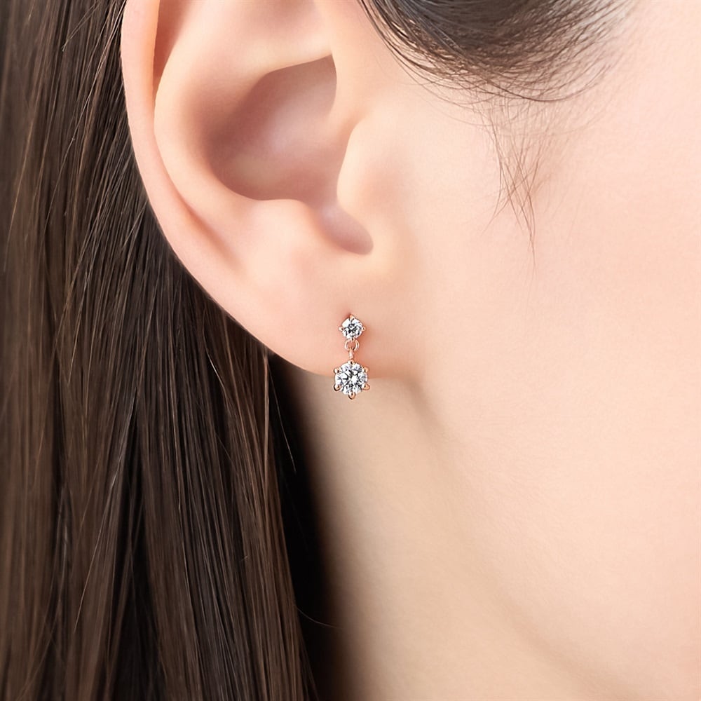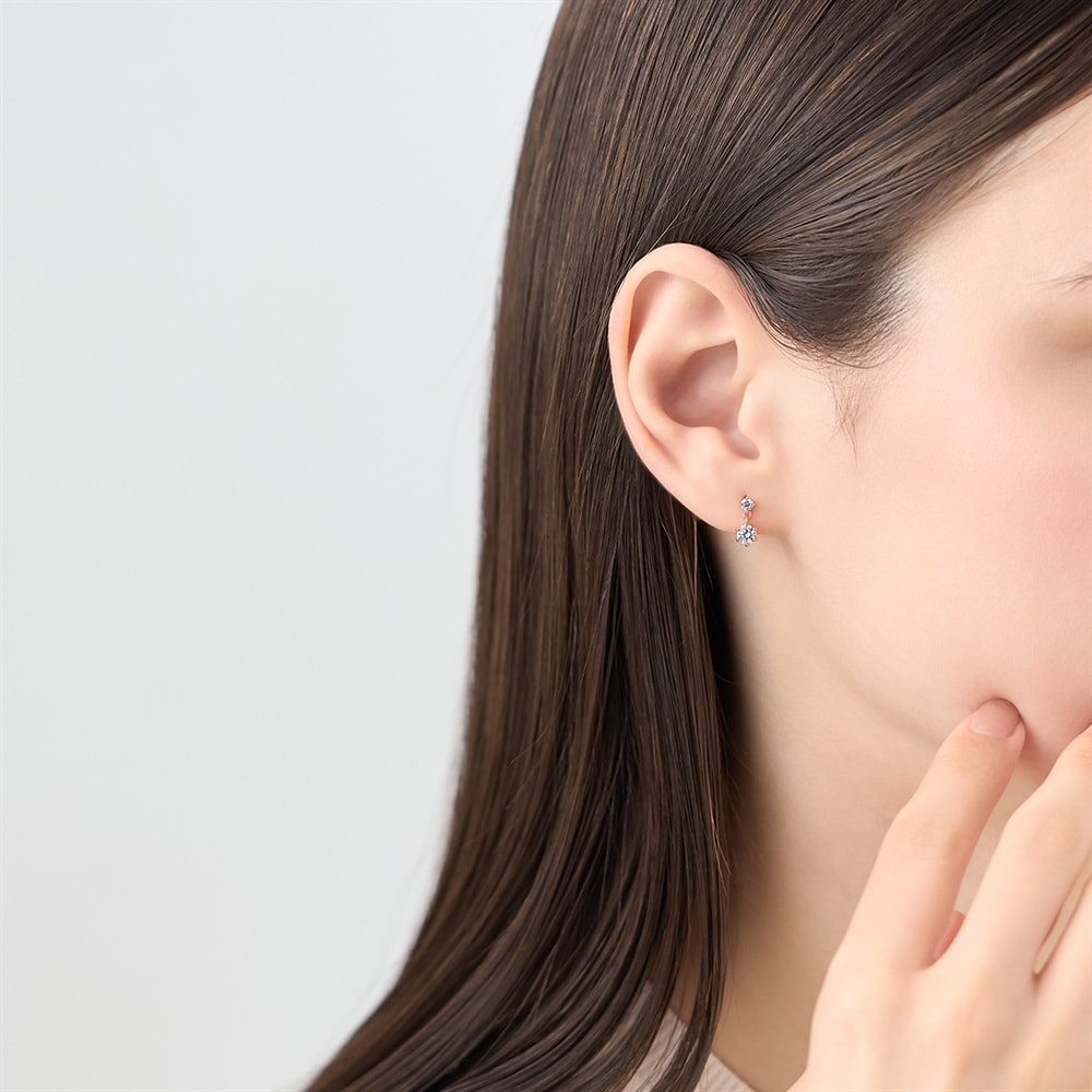 はみがき、着替え、今日のピアス -EARFLOW-毎日着けたいシンプルで合わせやすい定番-ESSENTIALS-大小2石のストーンが縦に連なり、ふとした仕草に合わせて上品にストーンが揺れるピンクゴールドカラーのピアス。顔周りに華やかな印象を与え、どんなスタイルにもさり気なく馴染むため、コーディネートの仕上げに最適です。年齢を問わずお使いいただけるデザインは、ご自身用はもちろん、大切な方へのギフトとしてもおすすめです。【同コレクションのアイテムはこちら】