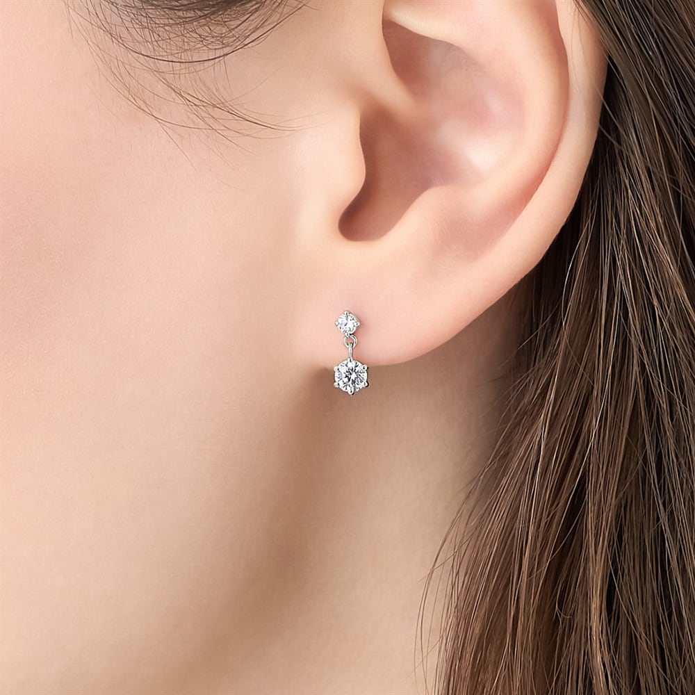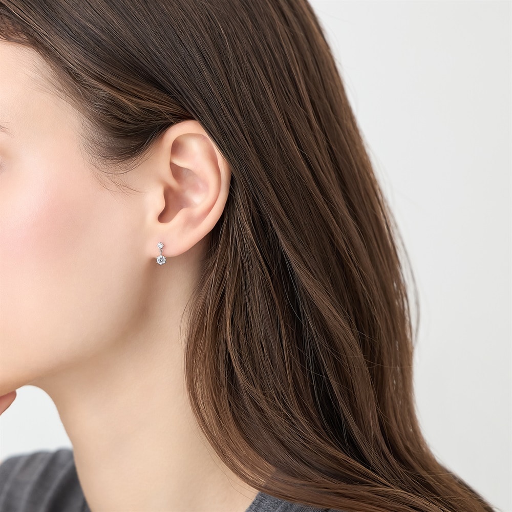 はみがき、着替え、今日のピアス -EARFLOW-毎日着けたいシンプルで合わせやすい定番-ESSENTIALS-大小2石のストーンが縦に連なり、ふとした仕草に合わせて上品にストーンが揺れるロジウムコーティングのピアス。顔周りに華やかな印象を与え、どんなスタイルにもさり気なく馴染むため、コーディネートの仕上げに最適です。年齢を問わずお使いいただけるデザインは、ご自身用はもちろん、大切な方へのギフトとしてもおすすめです。【同コレクションのアイテムはこちら】