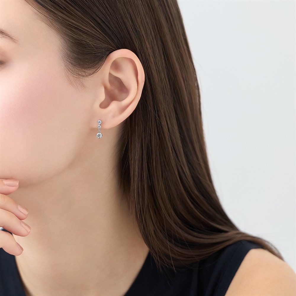 はみがき、着替え、今日のピアス -EARFLOW-毎日着けたいシンプルで合わせやすい定番-ESSENTIALS-動くたびにキュービックジルコニアが揺れ、顔周りを華やかに彩るロジウムコーティングのピアス。オフィスでの綺麗なスタイルから休日のお出掛けまで、シーンを問わずにお使いいただけます。日々のコーディネートをより楽しむことができるシンプルなデザインは、大切な方へのギフトにもおすすめです。【同コレクションのアイテムはこちら】