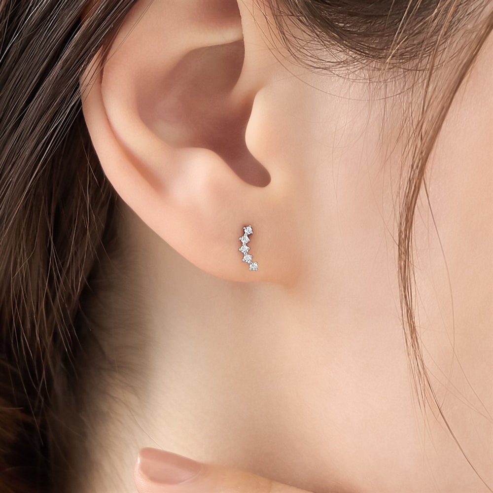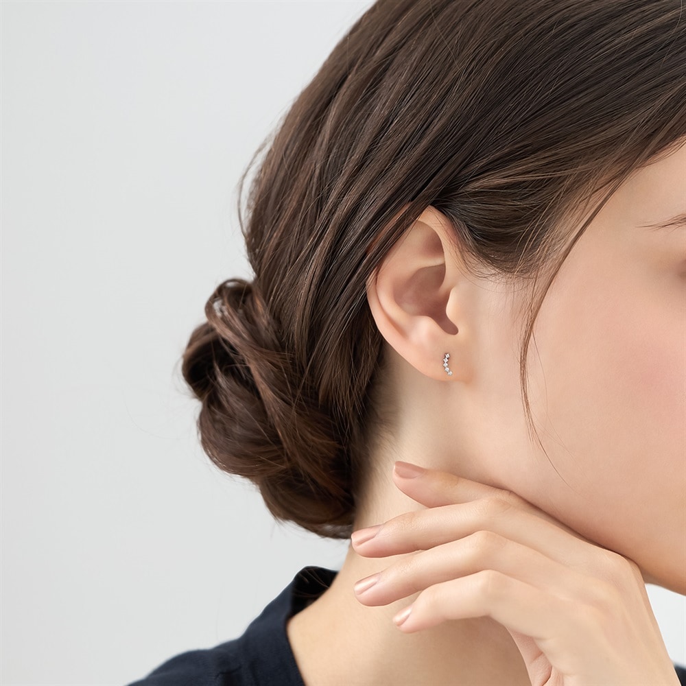 はみがき、着替え、今日のピアス -EARFLOW-毎日着けたいシンプルで合わせやすい定番-ESSENTIALS-緩やかなカーブ上にキュービックジルコニアが並ぶロジウムコーティングのピアス。繊細なきらめきが、顔周りに柔らかさとこなれ感をプラスします。主張しすぎないデザインのため、お手持ちのイヤーカフとの重ね着けにもおすすめです。【同コレクションのアイテムはこちら】