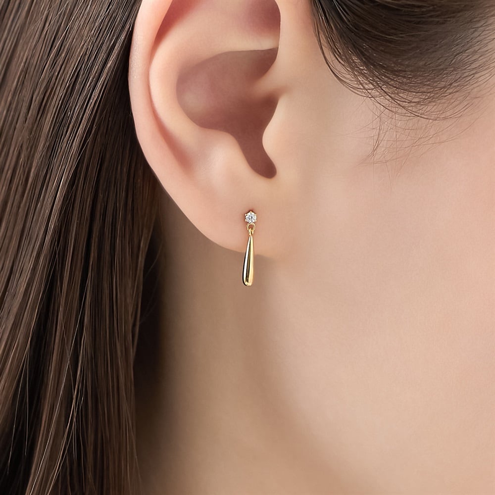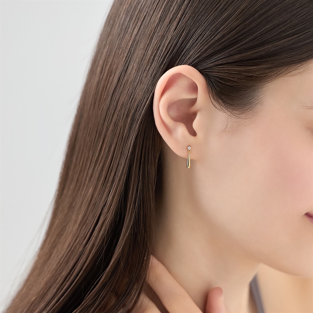はみがき、着替え、今日のピアス -EARFLOW-毎日着けたいシンプルで合わせやすい定番-ESSENTIALS-きらめくキュービックジルコニアに、ふっくらとしたしずくが揺れ動くイエローゴールドカラーのピアス。丸みのあるしずくのシルエットが、シャープな輝きの中にやわらかさをプラスします。オフィススタイルからカジュアルな装いまで、シーンを問わずにお使いいただくことができるため、毎日のコーディネートにさり気ない華やかさを添えたい時におすすめです。【同コレクションのアイテムはこちら】