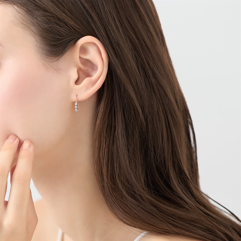 はみがき、着替え、今日のピアス -EARFLOW-毎日着けたいシンプルで合わせやすい定番-ESSENTIALS-3石のキュービックジルコニアが連なるフックタイプのピアス。きらめくデザインが、顔周りを明るく華やかに彩ります。さっと耳に引っ掛けるだけで装着でき、忙しい朝にも便利なアイテム。大切な方へのギフトにはもちろん、ご自身へのご褒美にもおすすめのアイテムです。【同コレクションのアイテムはこちら】