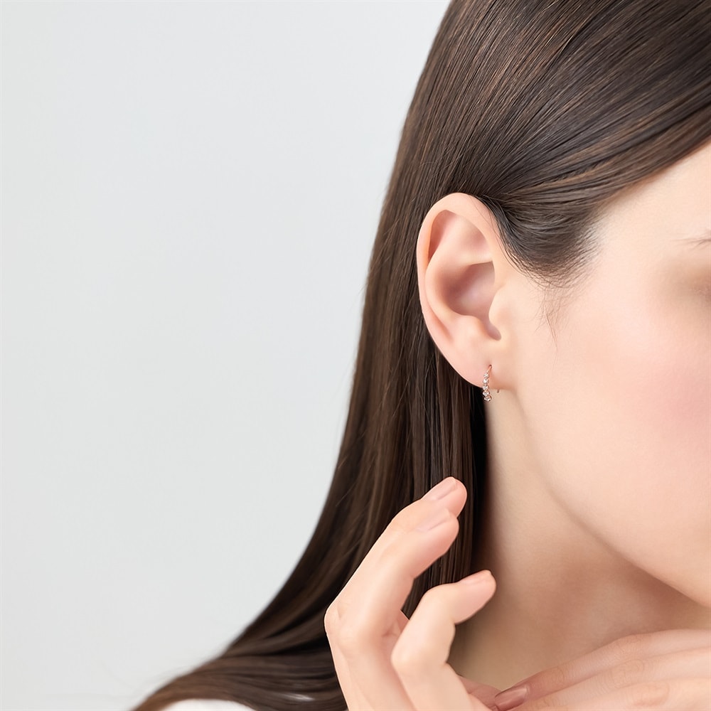 はみがき、着替え、今日のピアス -EARFLOW-毎日着けたいシンプルで合わせやすい定番-ESSENTIALS-きらめくキュービックジルコニアが並ぶフックタイプのピアス。普段のカジュアルな装いを格上げするのはもちろん、特別な日のアクセントとしてもおすすめ。身に着けやすサイズ感のため、シーンを選ばずに活躍します。【同コレクションのアイテムはこちら】