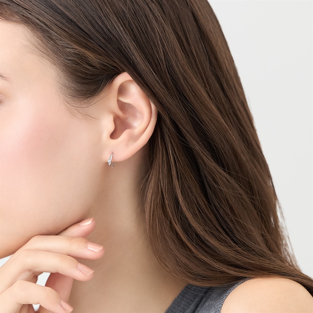 はみがき、着替え、今日のピアス -EARFLOW-毎日着けたいシンプルで合わせやすい定番-ESSENTIALS-シーンを問わず毎日取り入れられる、シンプルなフックピアス。きらめくキュービックジルコニアが上品な輝きを放ち、顔周りを明るい印象にします。主張しすぎないデザインのため、お手持ちのジュエリーとのコーディネートにも重宝するアイテム。ご自身へのご褒美はもちろん、大切な方へのギフトにもおすすめです。【同コレクションのアイテムはこちら】