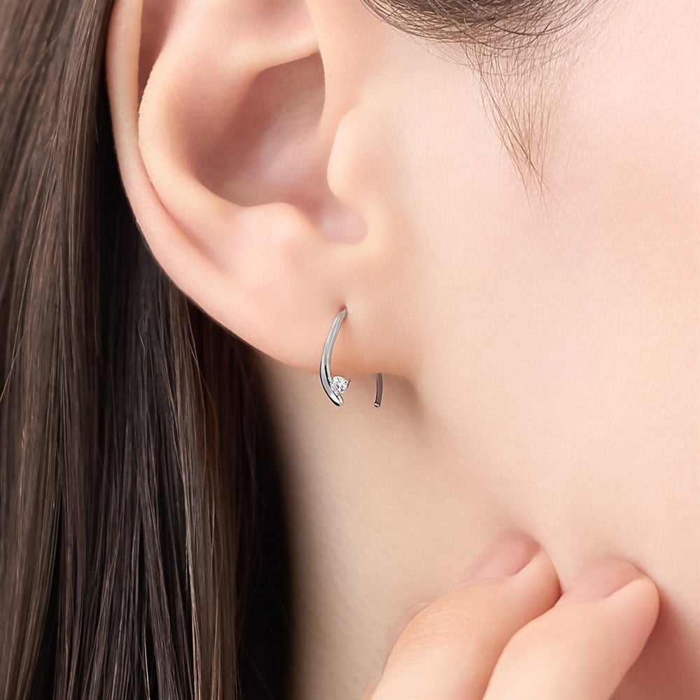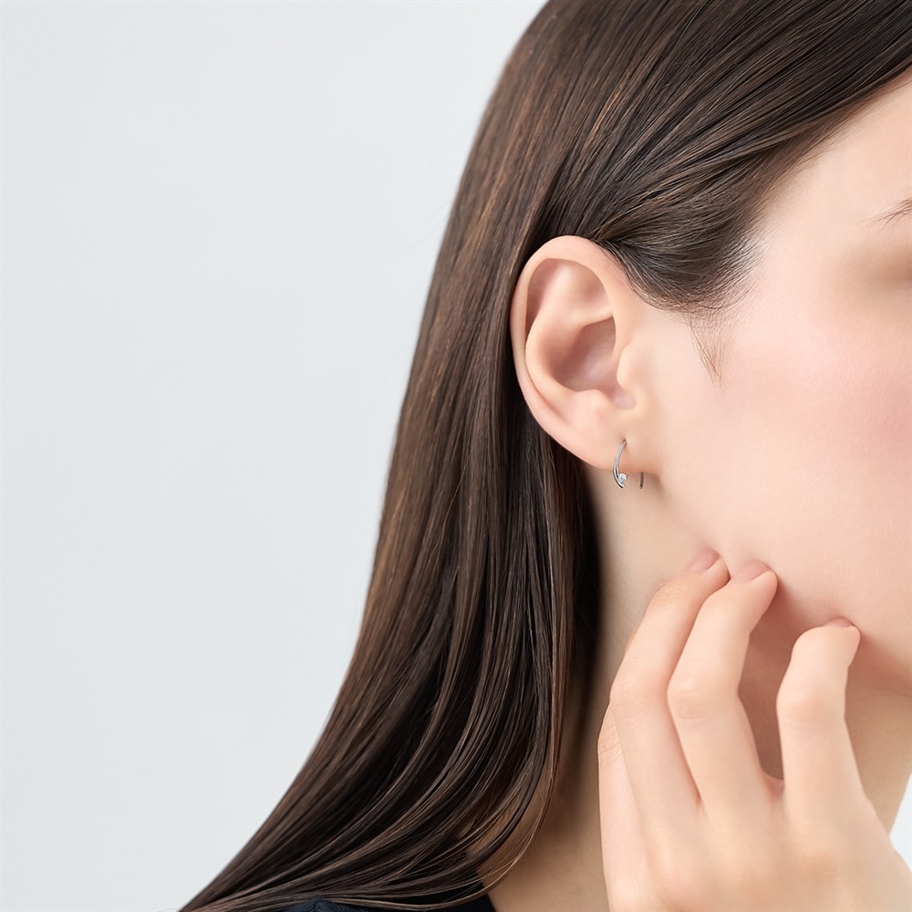 はみがき、着替え、今日のピアス -EARFLOW-毎日着けたいシンプルで合わせやすい定番-ESSENTIALS-なめらかな曲線にストーンがきらめく、シンプルなデザインのピアス。柔らかなシルエットは、顔周りに優しさと明るさを放ちます。主張しすぎないサイズ感のため、綺麗めからカジュアルコーデまで幅広くお楽しみいただけます。【同コレクションのアイテムはこちら】
