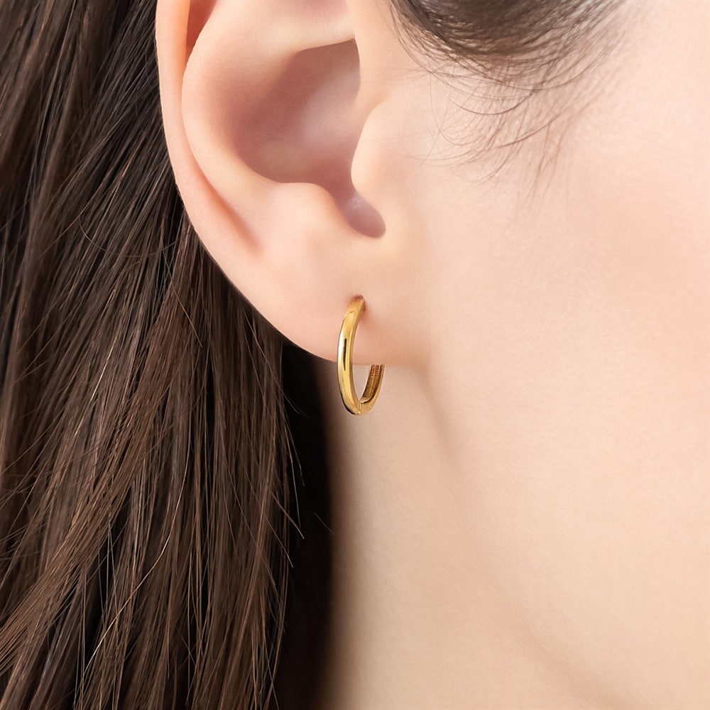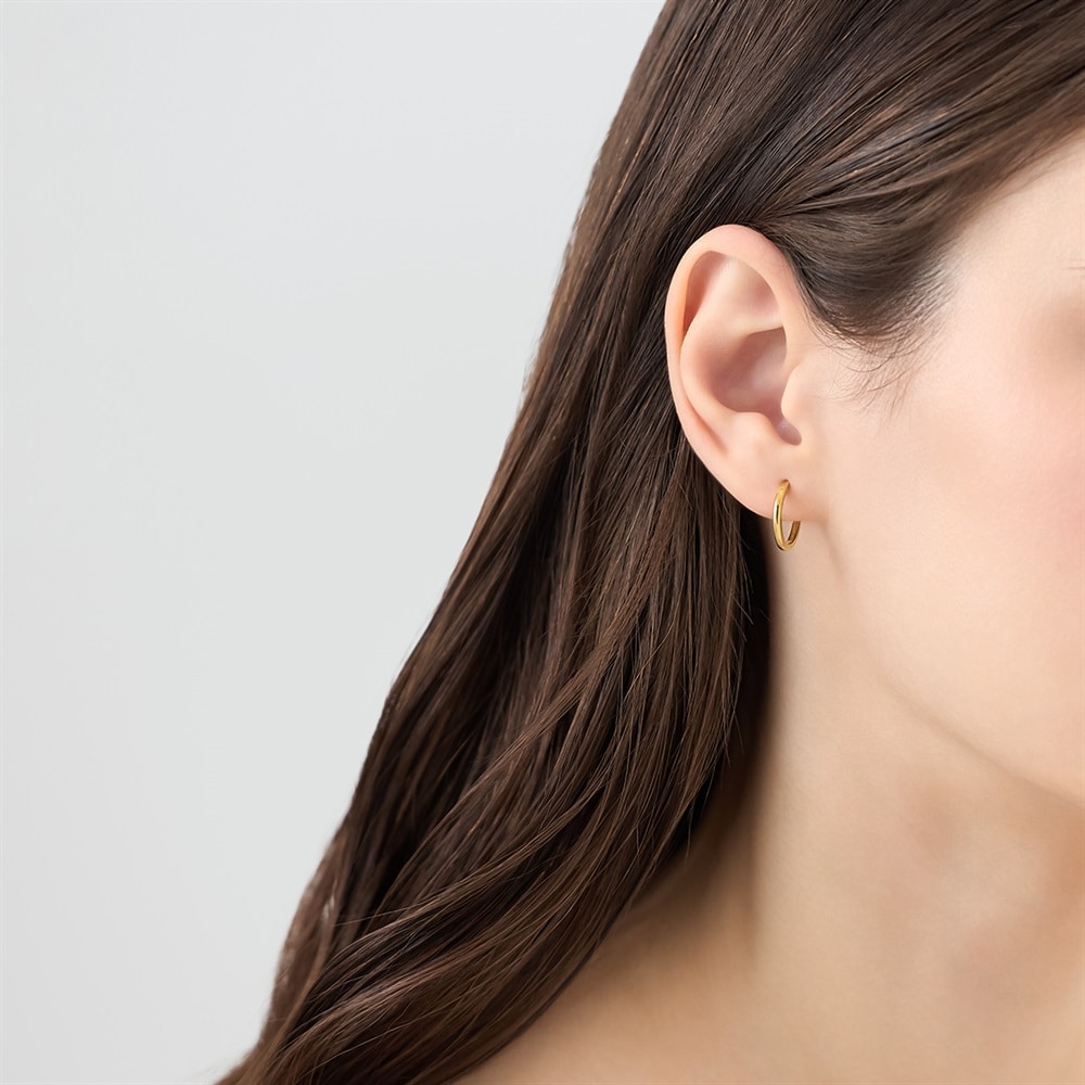 はみがき、着替え、今日のピアス -EARFLOW-毎日着けたいシンプルで合わせやすい定番-ESSENTIALS-流行に左右されない、シンプルなイエローゴールドカラーのフープピアス。控えめなサイズ感が耳元に品良く寄り添い、Tシャツなどのカジュアルスタイルからオフィスの綺麗なスタイルまで幅広くお使いいただけます。単品で楽しむのはもちろん、イヤーカフとの重ね着けにもぴったりです。【同コレクションのアイテムはこちら】【カラー違い】品番:152624257427はこちら>品番:152624257430はこちら>【サイズ違い】品番:152624257442はこちら>品番:152624257448はこちら>品番:152624257454はこちら>品番:152624257460はこちら>