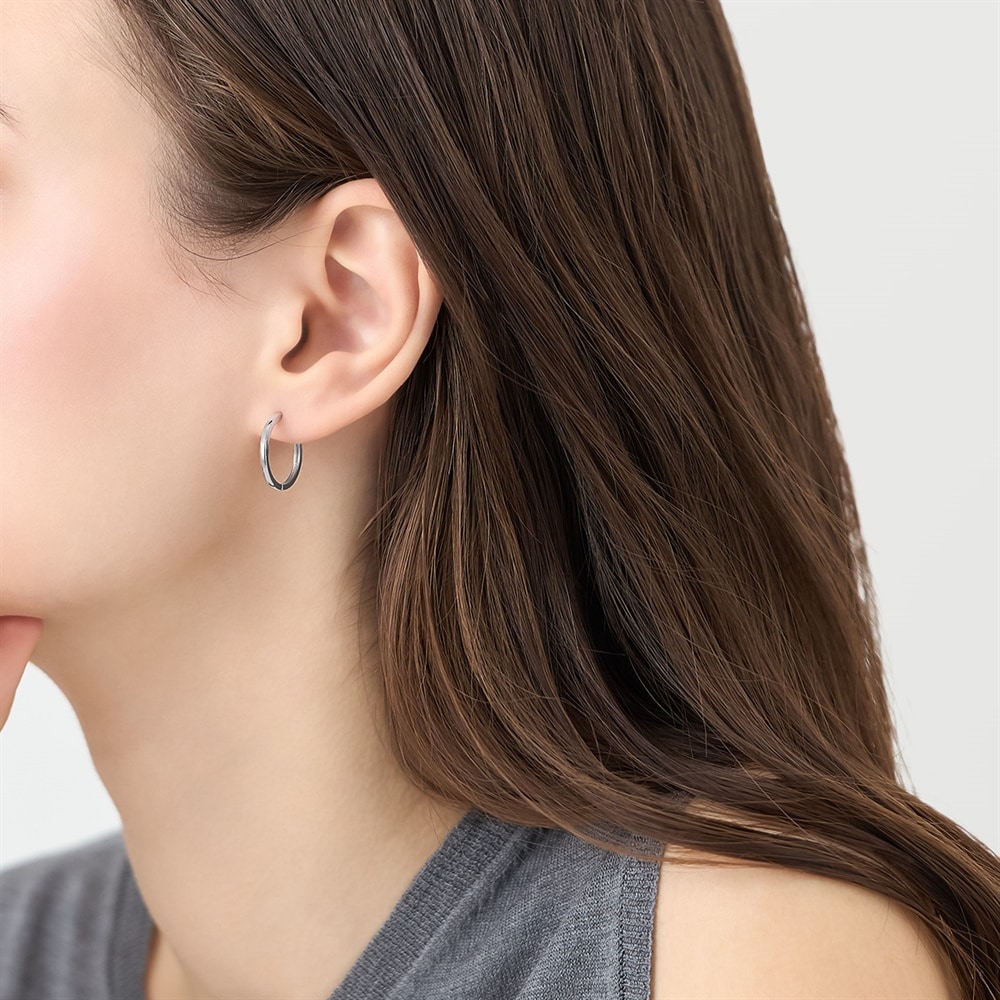 はみがき、着替え、今日のピアス -EARFLOW-毎日着けたいシンプルで合わせやすい定番-ESSENTIALS-流行に左右されない、シンプルなロジウムコーティングのフープピアス。ほどよいサイズが耳元に品良く寄り添い、Tシャツなどのカジュアルスタイルからオフィスの綺麗なスタイルまで幅広くお使いいただけます。身に着けやすいボリュームのため、単品で楽しむのはもちろんイヤーカフとの重ね着けにもぴったり。日々のコーディネートをより楽しむことができるデザインは、ご自身へのご褒美におすすめです。【同コレクションのアイテムはこちら】【カラー違い】品番:152624257436はこちら>品番:152624257442はこちら>【サイズ違い】品番:152624257430はこちら>品番:152624257445はこちら>品番:152624257451はこちら>品番:152624257457はこちら>