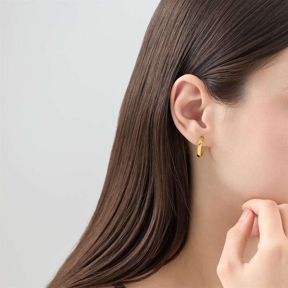 はみがき、着替え、今日のピアス -EARFLOW-毎日着けたいシンプルで合わせやすい定番-ESSENTIALS-コーディネートに取り入れやすい、シンプルなイエローゴールドカラーのフープピアス。少し大きめのサイズと地金の厚みが、耳元に洗練された存在感を与えます。スタイリッシュなフォルムは、オフィスでのジャケットスタイルからカジュアルな装いまで幅広くお使いいただけるアイテム。日々のコーディネートをより楽しむことができるデザインは、イヤーカフとのご自身へのご褒美におすすめです。【同コレクションのアイテムはこちら】【カラー違い】品番:152624257457はこちら>【サイズ違い】品番:152624257448はこちら>品番:152624257454はこちら>品番:152624257433はこちら>品番:152624257442はこちら>