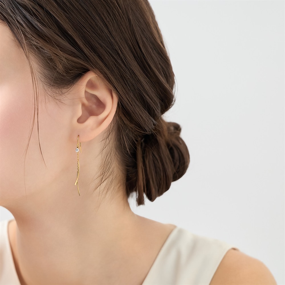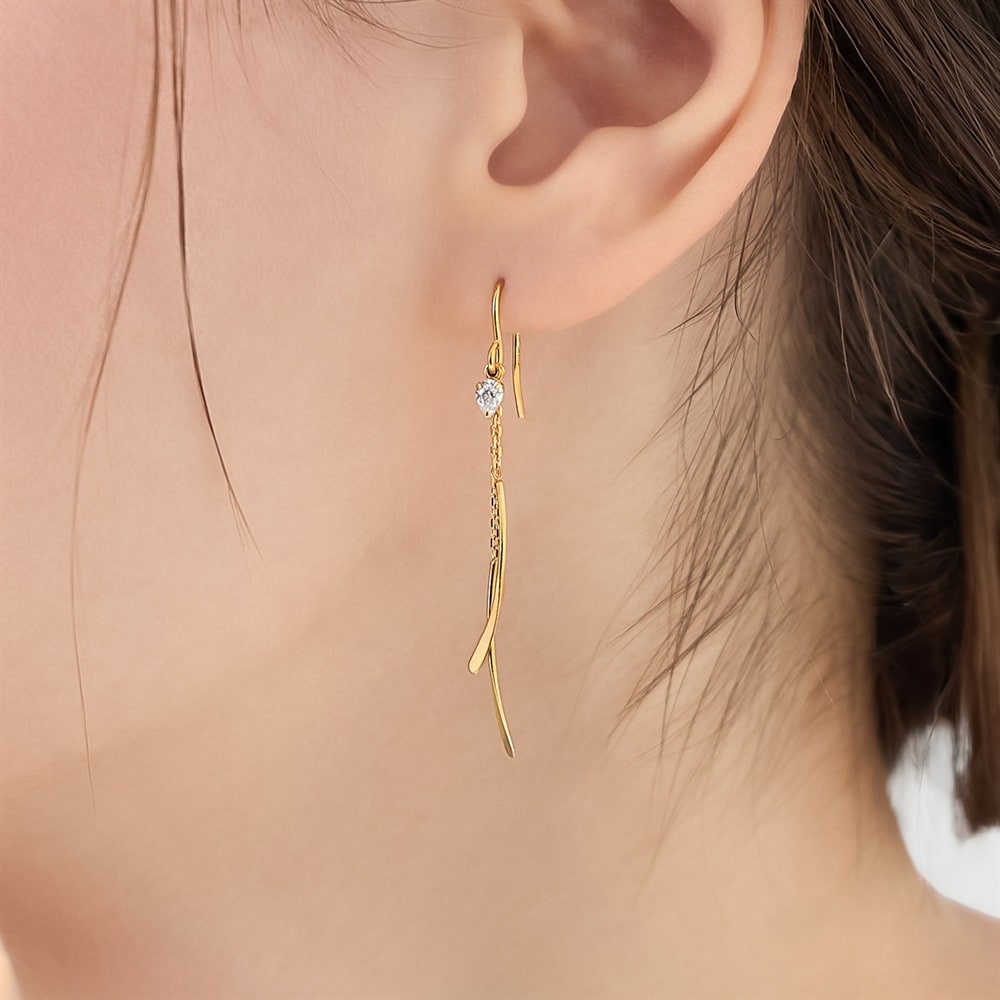 はみがき、着替え、今日のピアス -EARFLOW-毎日着けたいシンプルで合わせやすい定番-ESSENTIALS-すっと伸びる2本のラインがアクセントとなる、イエローゴールドカラーのピアス。なめらかな曲線の重なりが、動くたびに軽やかに揺れ動きます。縦のラインはフェイスラインをすっきりとシャープに見せ、コーディネートに取り入れるだけで洗練された印象を与えてくれるアイテムです。【同コレクションのアイテムはこちら】