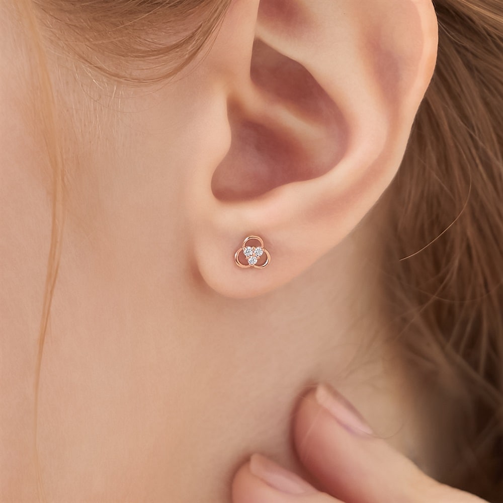 はみがき、着替え、今日のピアス -EARFLOW-カラーやモチーフでその日の気分をスイッチ-MOOD-3石のキュービックジルコニアを寄せ、お花のように仕立てた可憐な印象のピアス。ピンクゴールドカラーの柔らかな輝きに、透かしを取り入れた抜け感のあるデザインは、顔周りを軽やかに彩り、毎日のコーディネートに寄り添います。さり気ないサイズ感で、ご自身へのご褒美やギフトにもおすすめのアイテムです。【同コレクションのアイテムはこちら】