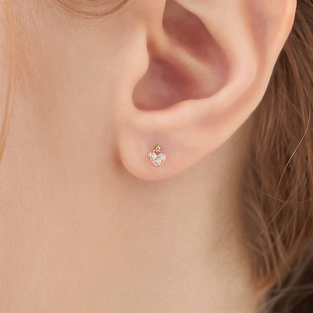 はみがき、着替え、今日のピアス -EARFLOW-カラーやモチーフでその日の気分をスイッチ-MOOD-愛らしいハートモチーフに、3石のキュービックジルコニアがキラキラと輝くピアス。肌なじみのよいピンクゴールドカラーがやわらかな印象を与えます。さり気ないサイズ感ながらも、モチーフに沿って並んだ石が繊細にきらめき、耳元に可憐な華やかさをプラス。デイリーからオフィスシーンまで幅広いスタイリングに寄り添うアイテムです。【同コレクションのアイテムはこちら】